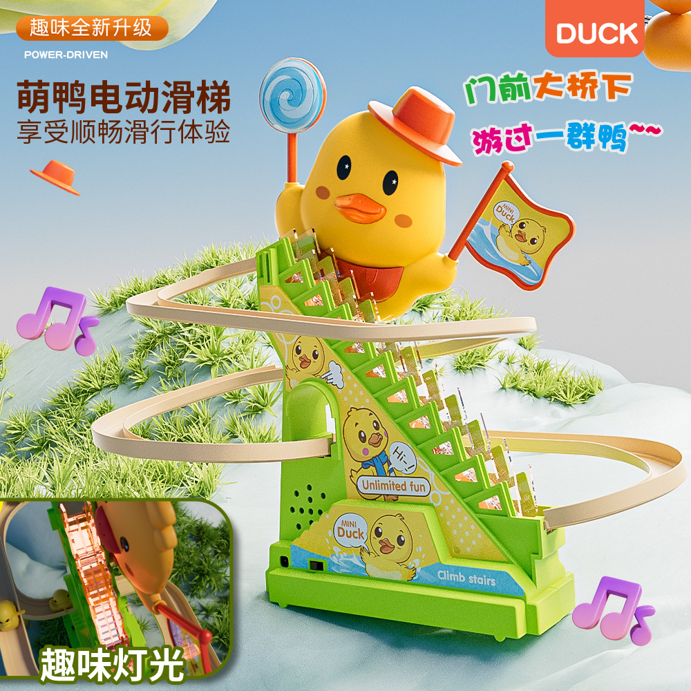 Детский электрический качающийся поезд-утка для подъема по лестнице, развивающая игрушка для малышей 1-3 лет