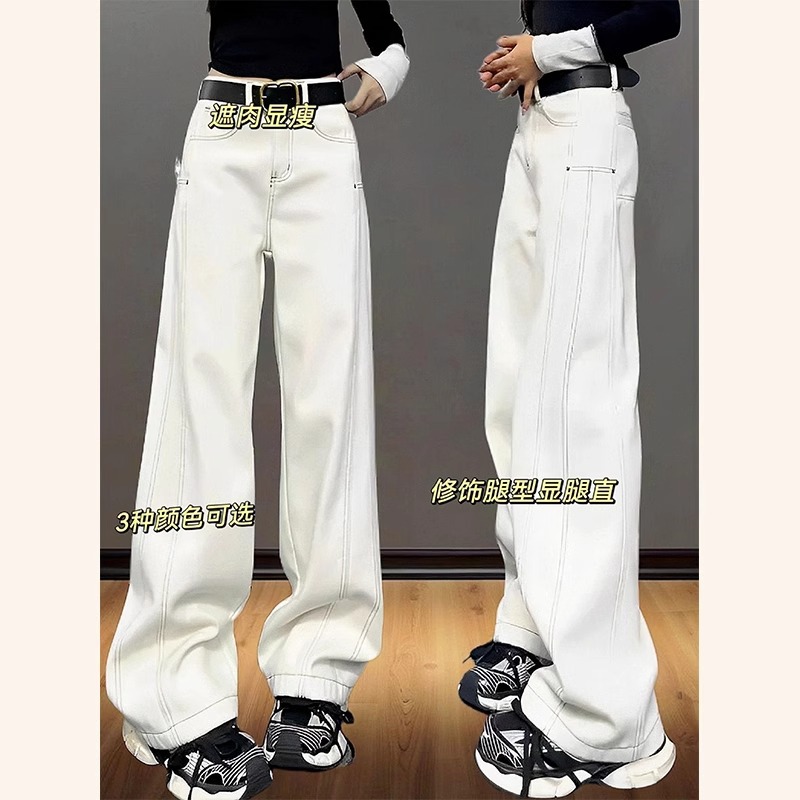 Плюшевые плюшевые толстые джинсы женские зимние новые грушевидные тела свободные тонкая талия дикие широкие брюки