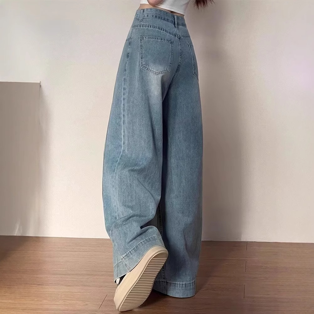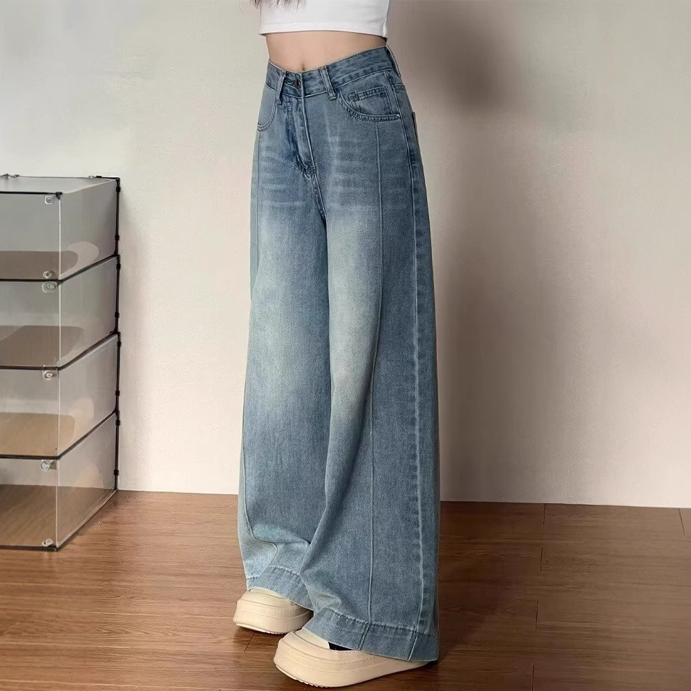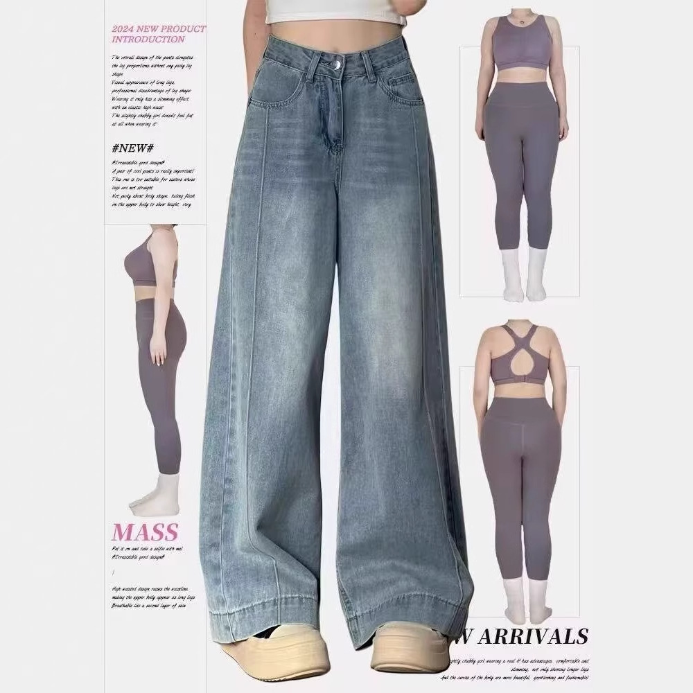 Главная страница > Винтажные джинсовые широкие брюки для женщин, с высокой талией, новый весенний стиль, большие размеры, свободный крой, утягивающие, грушевидной формы, прямые брюки.