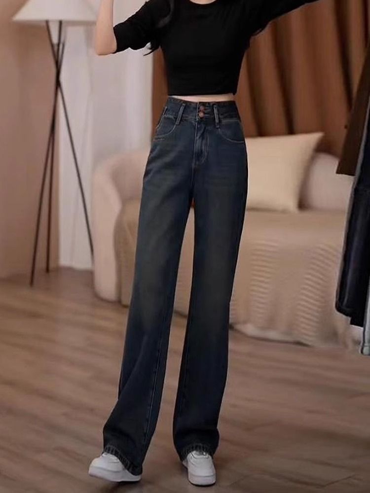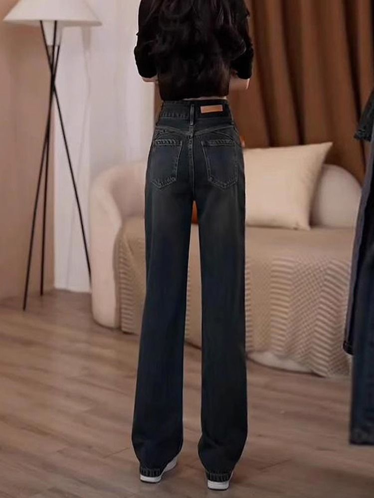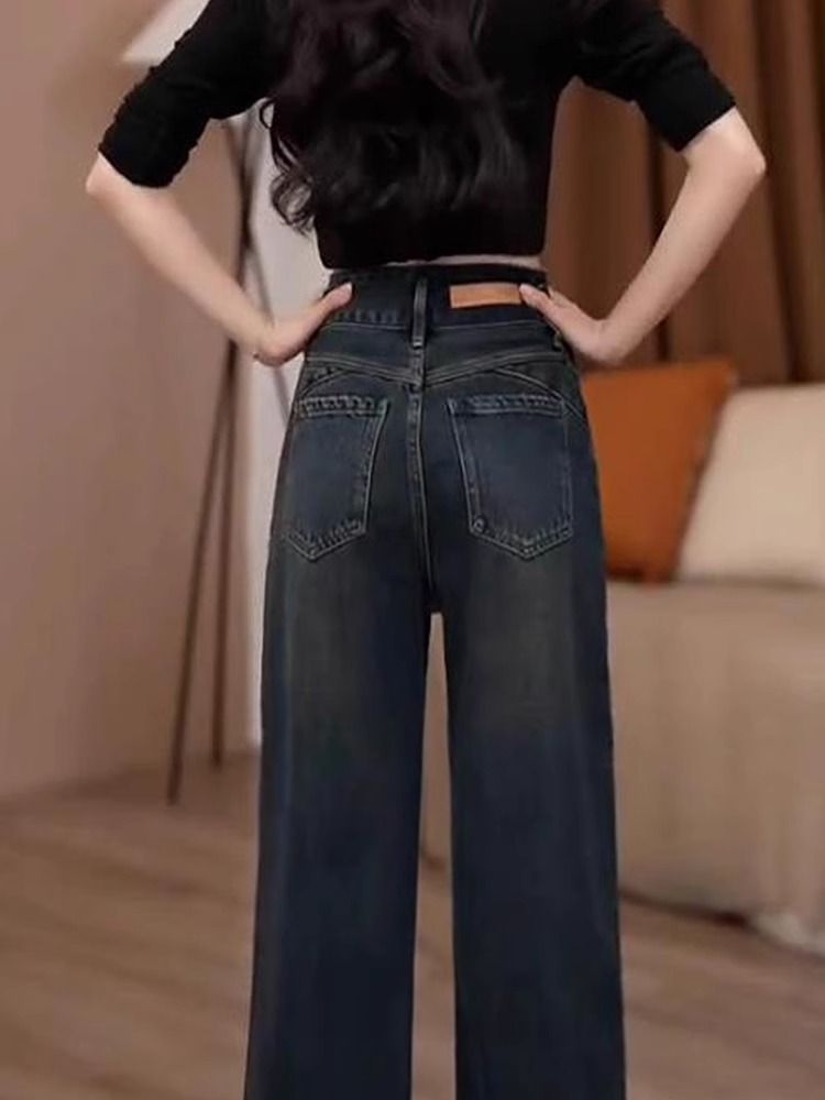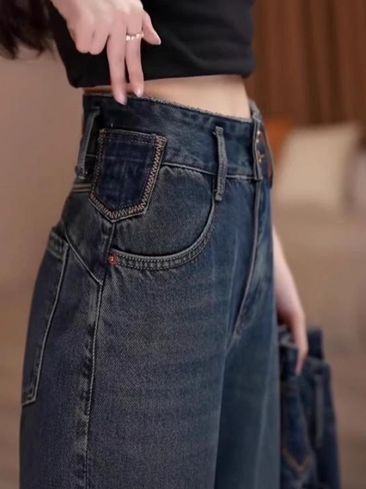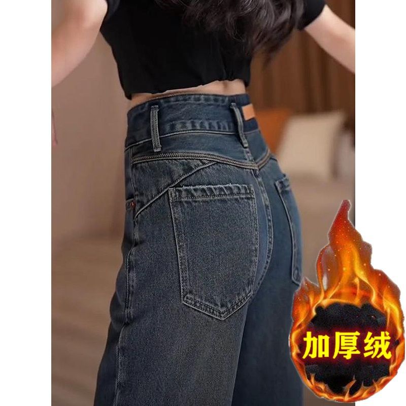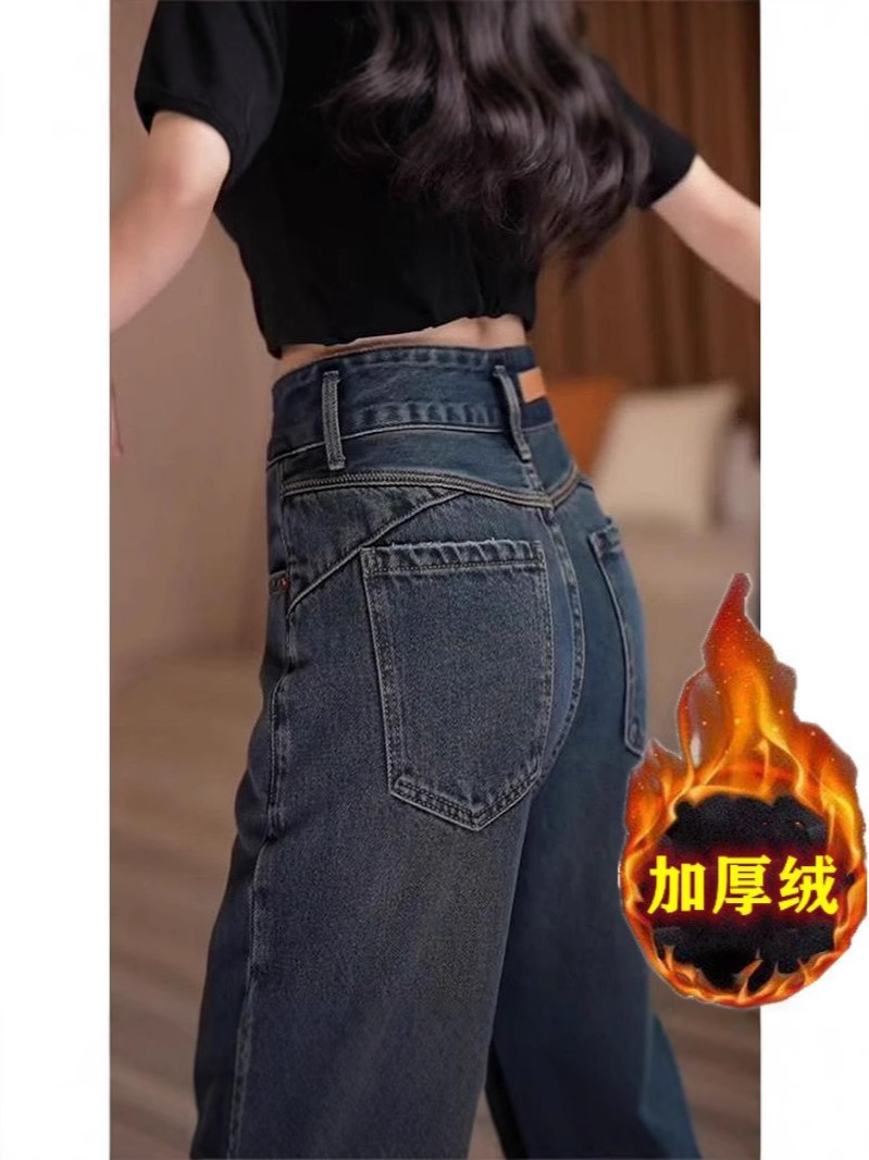 Главная страница > Ретро свободные широкие джинсы женские осень-зима 2024 года плюс размер тонкая прямолинейная зимняя пуховая штаны