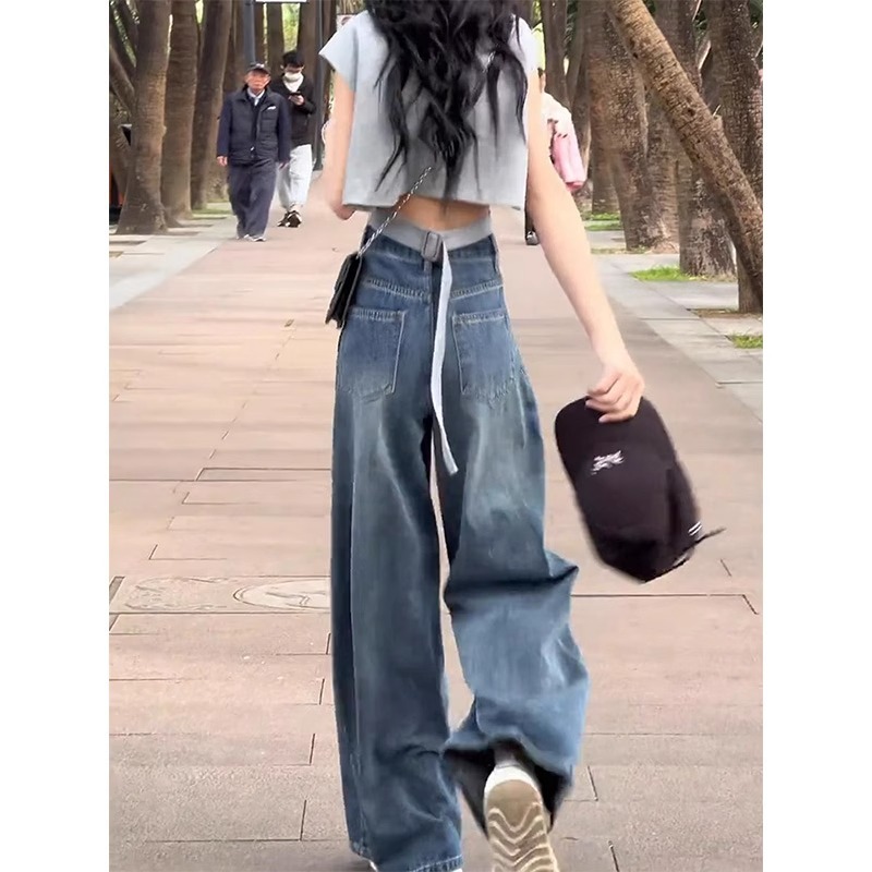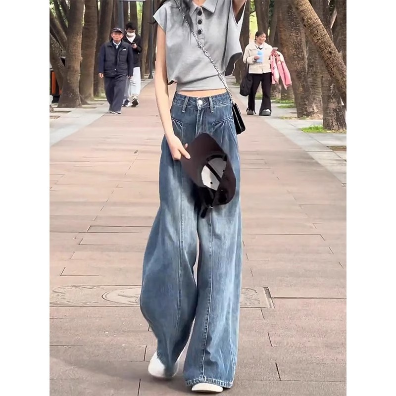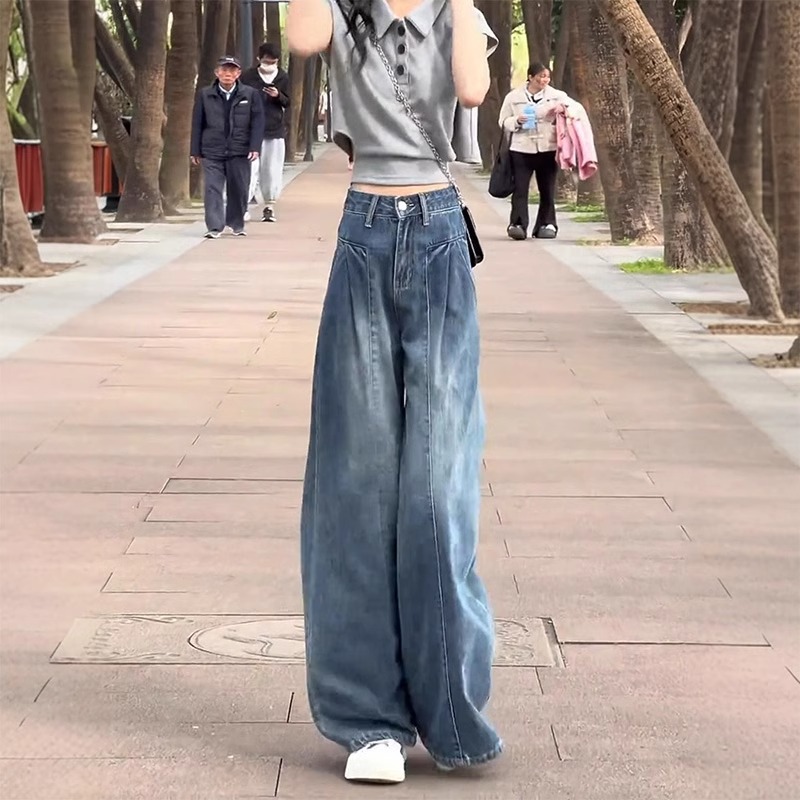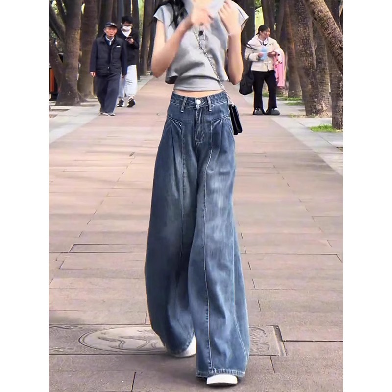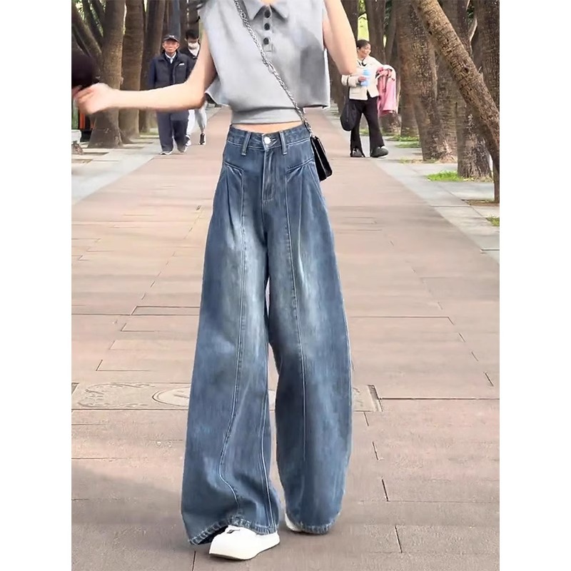 Главная страница > Винтажные широкие джинсы для женщин, весна/лето 2025, тонкие миниатюрные свободные утягивающие широкие брюки с высокой талией больших размеров