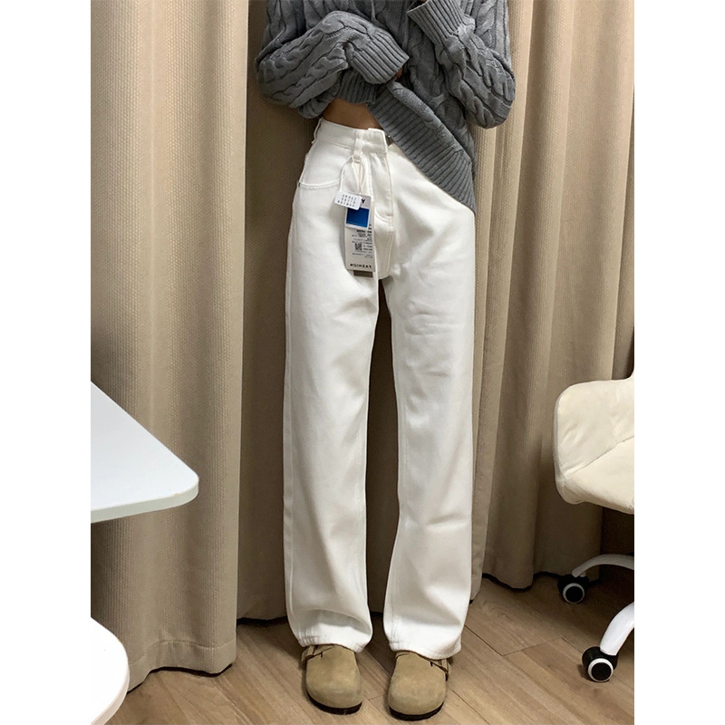 Главная страница > Белые джинсы женские прямые свободные зимние бархатные 2024 новые большие размеры толстые мм с высокой талией тонкие широкие брюки