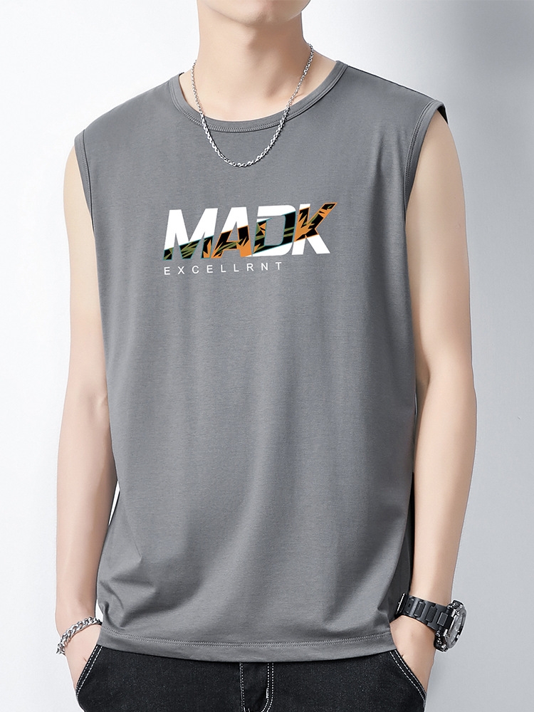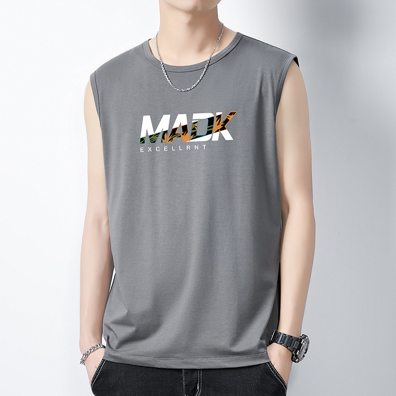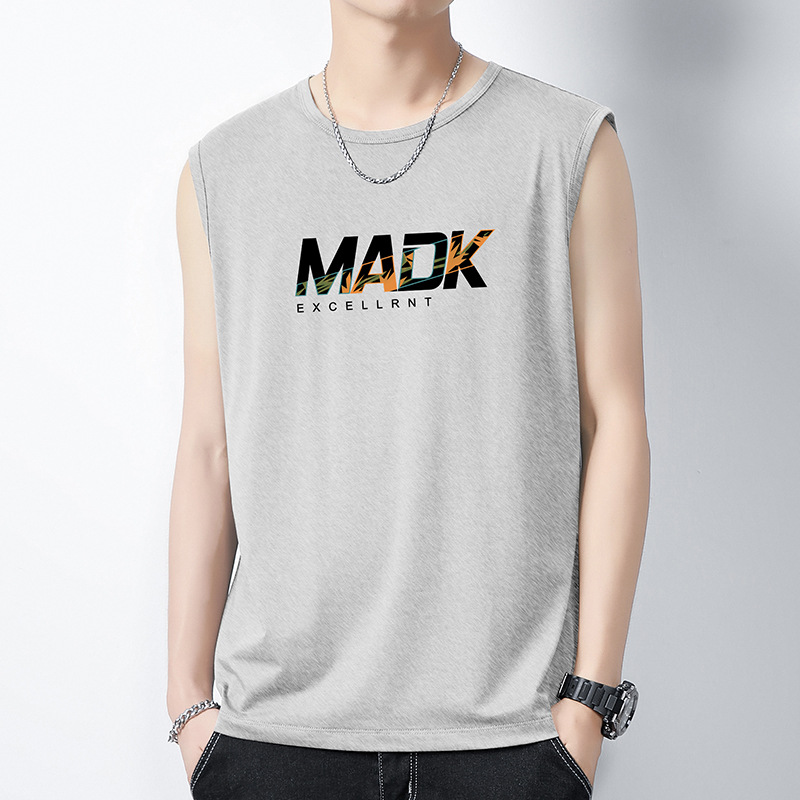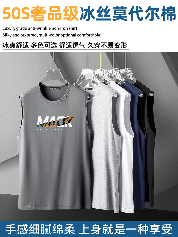Главная страница > Модальный ледяной шелк, модный брендовый модный тонкий мужской жилет с принтом, спортивный фитнес, тонкая быстросохнущая дышащая майка для мужчин