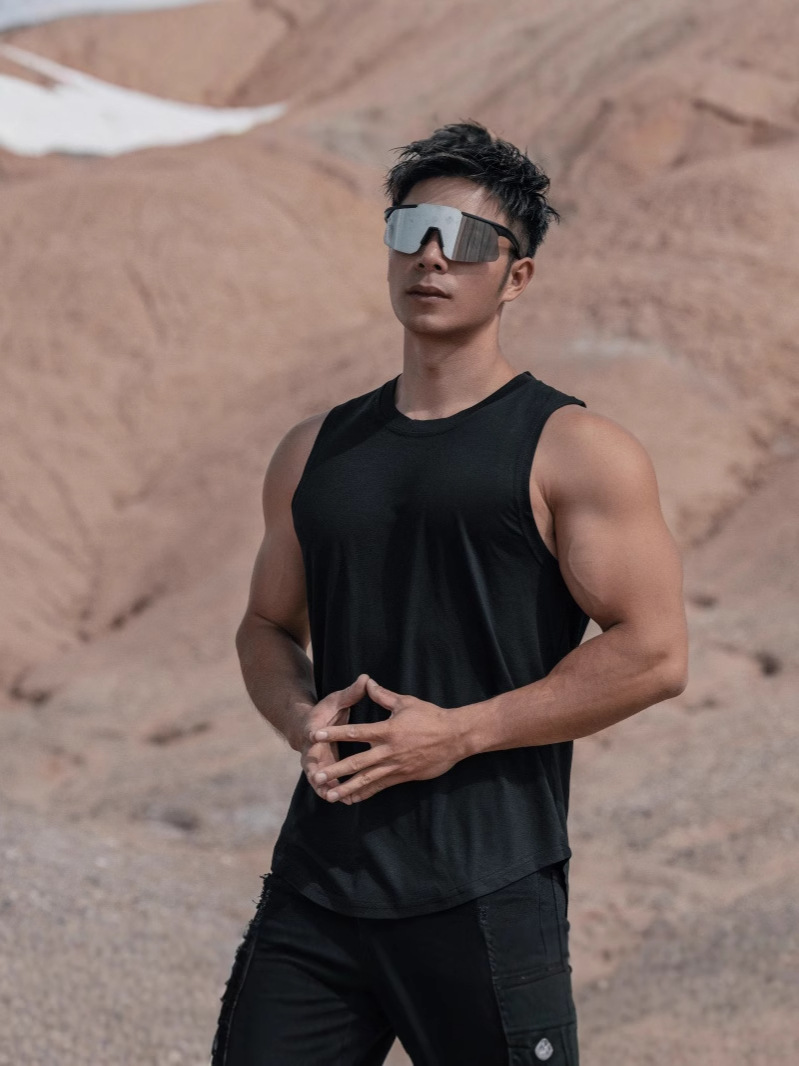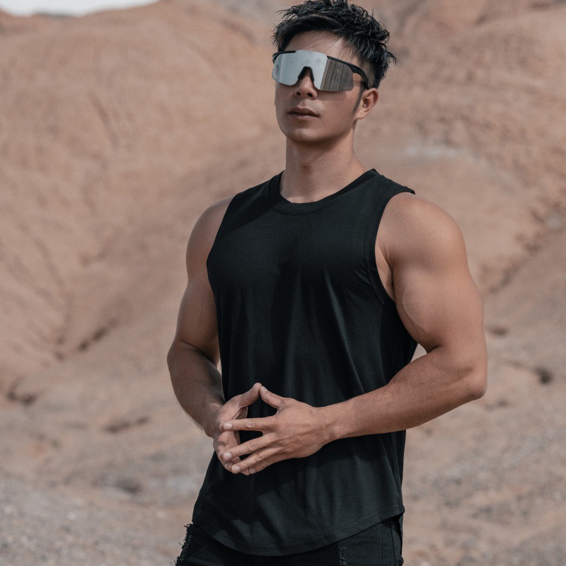 Главная страница > Летний мужской новый спортивный досуг бег фитнес-тренинг сплошной цвет эластичные сухие круглые безрукавные жилеты