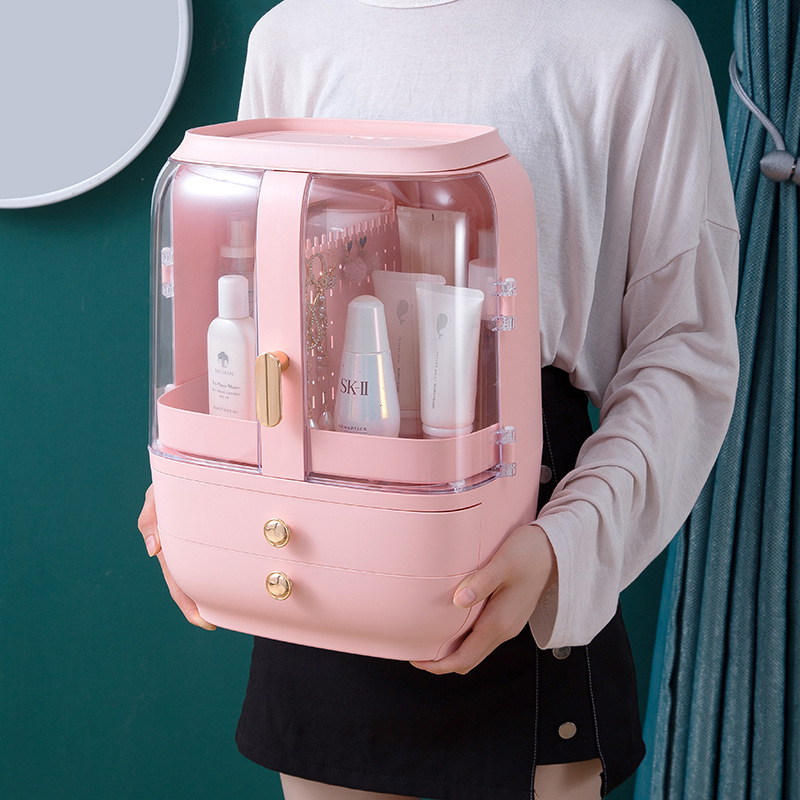 Ящик для хранения косметики Настольный пылезащитный многофункциональный уход за кожей Косметичка большой емкости Домашний ящик для хранения красоты