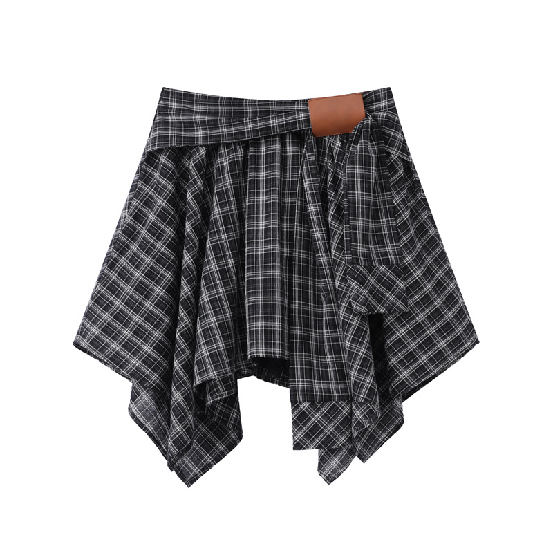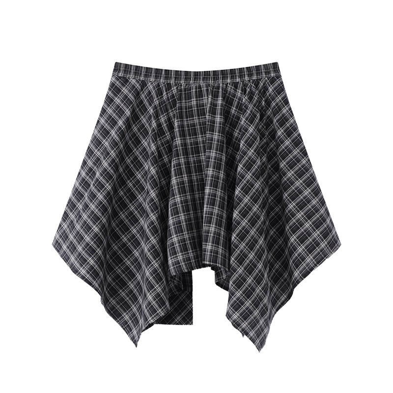00AA-1058 Черно-белая клетчатая юбка в клетку 2025 весна-лето новая английская академия ветра нерегулярный дизайн подол