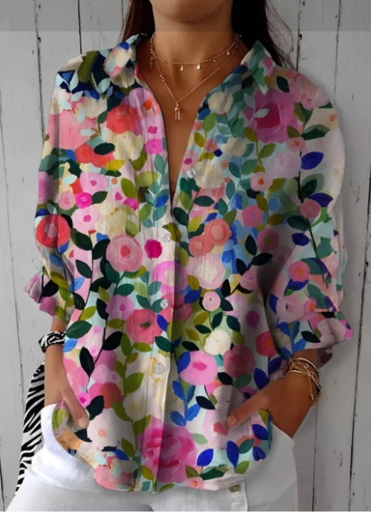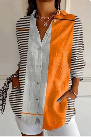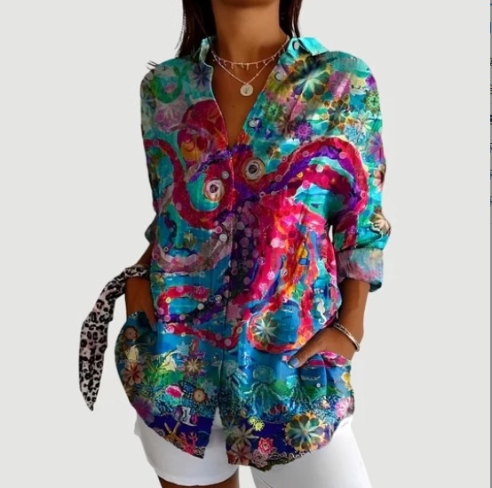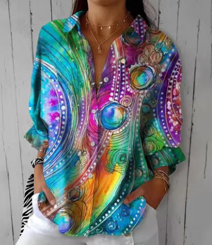 Главная страница > 2024 трансграничный новый 3D цветовой принт с принтом осенняя повседневная рубашка свободная европейская и американская женская рубашка на пуговицах