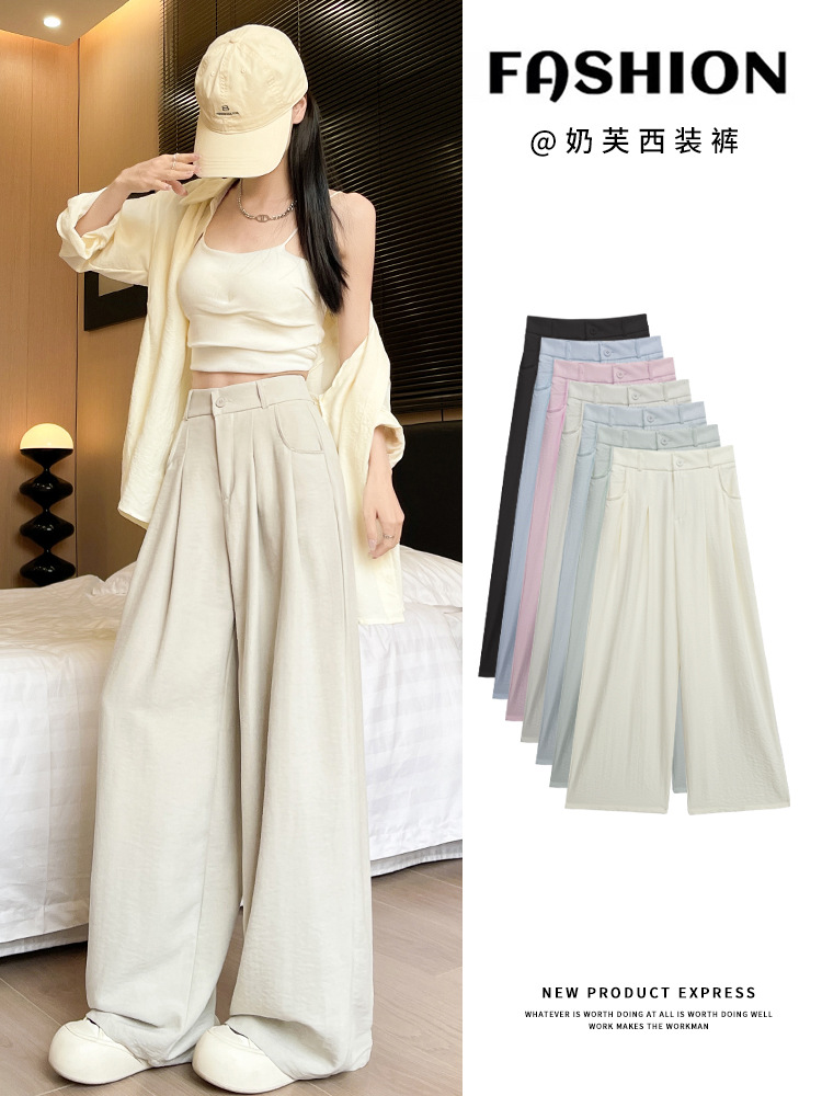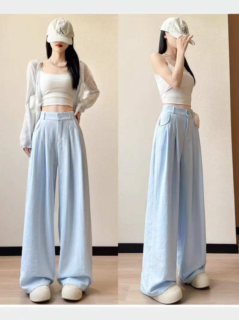 Главная страница > Ashi Mi ленивые сиськи брюки с высокой талией и полуэластыми подвесками повседневные прямые брюки с ледяным шелком