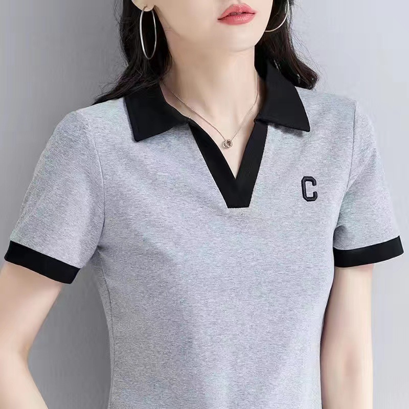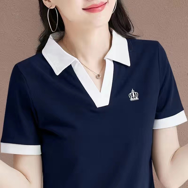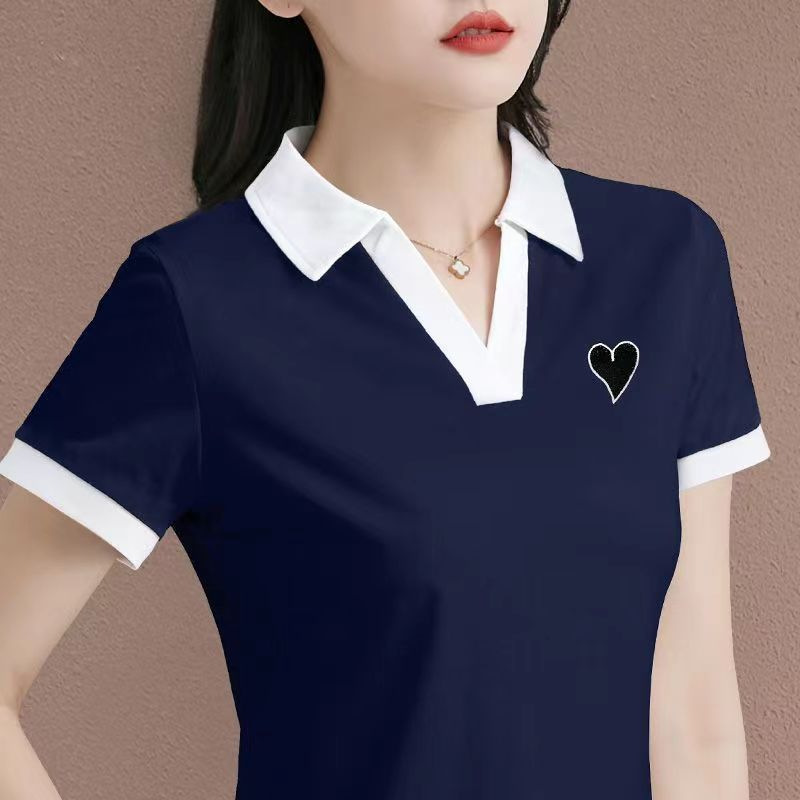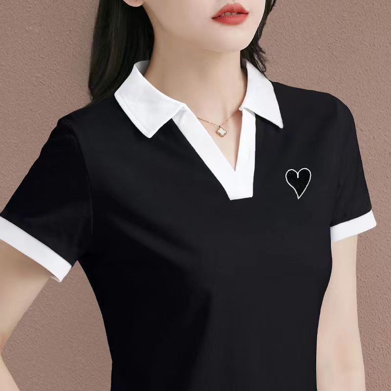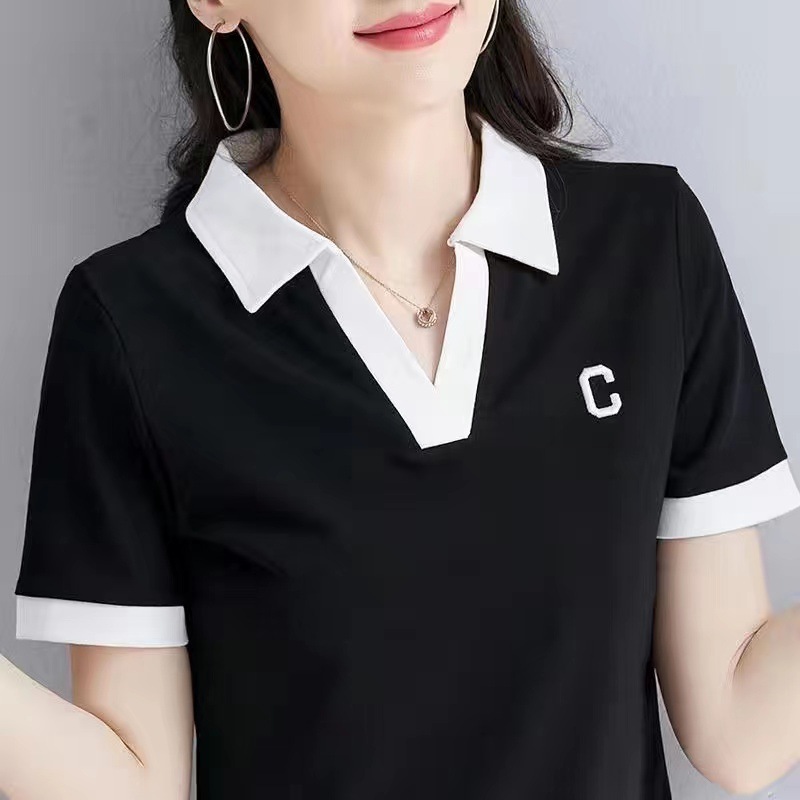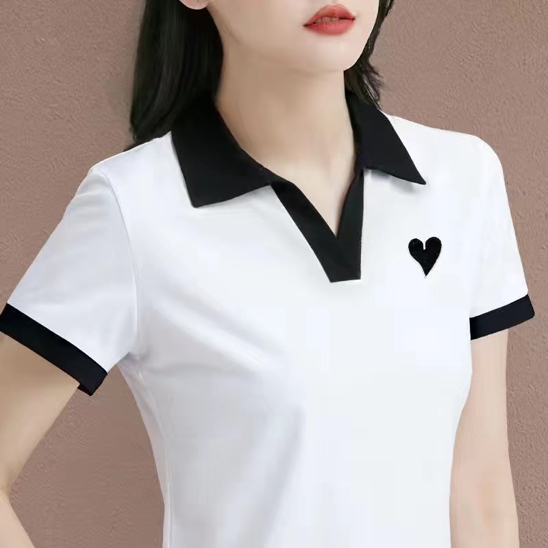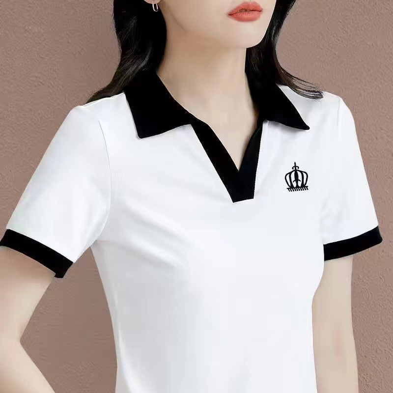 Главная страница > Женская футболка-поло с короткими рукавами и лацканами, новинка 2023 года, модные летние модные топы высокого класса