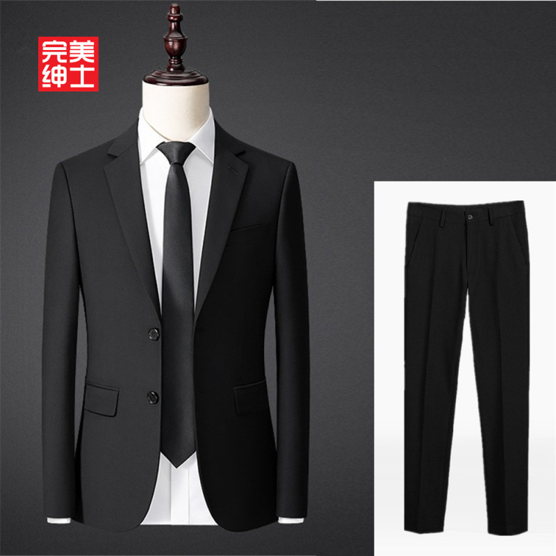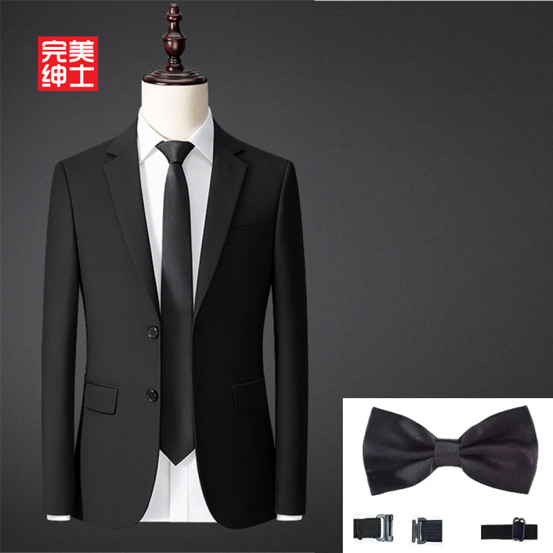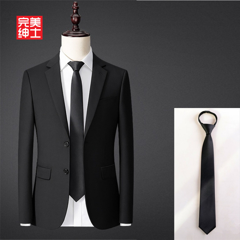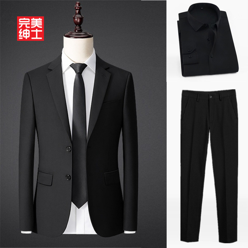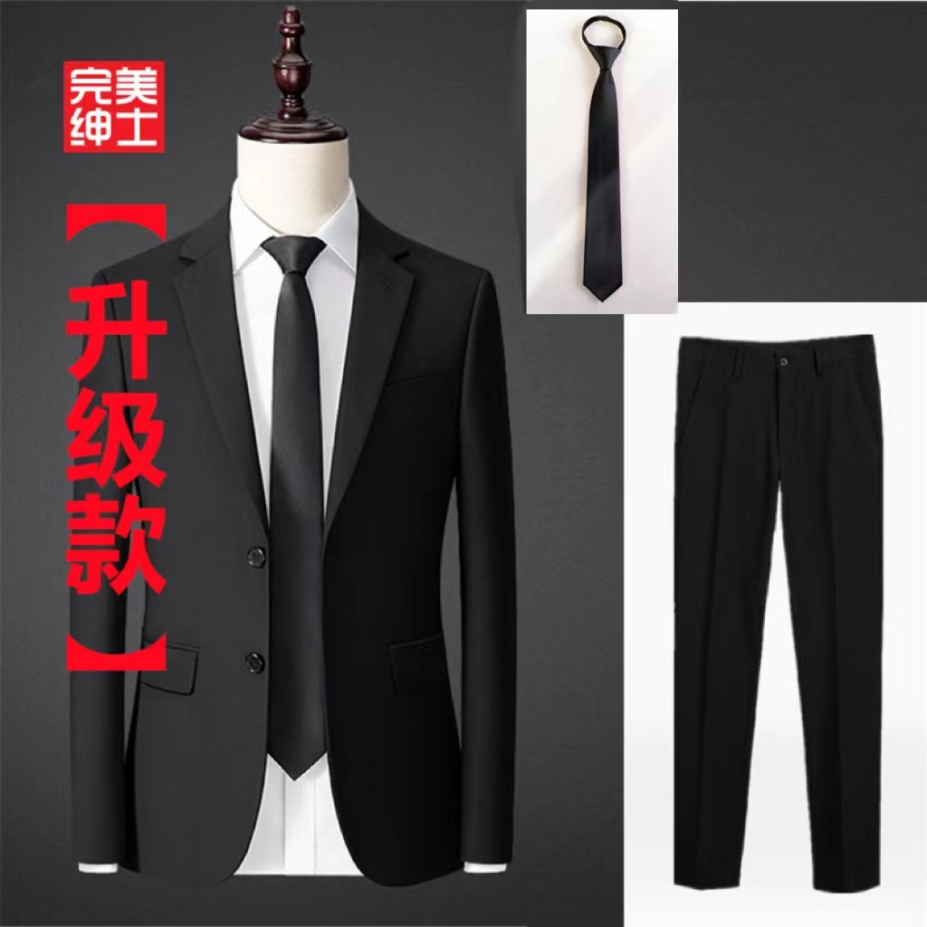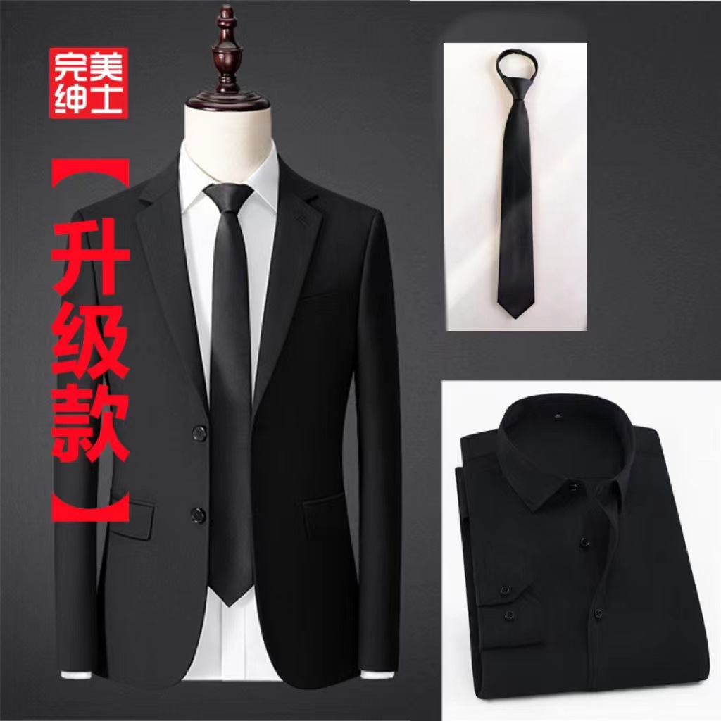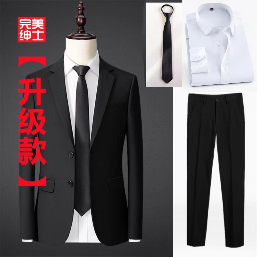 [Обновленная модель] (комплект из 3 предметов + галстук) черный костюм + белая рубашка + черные брюки + галстук