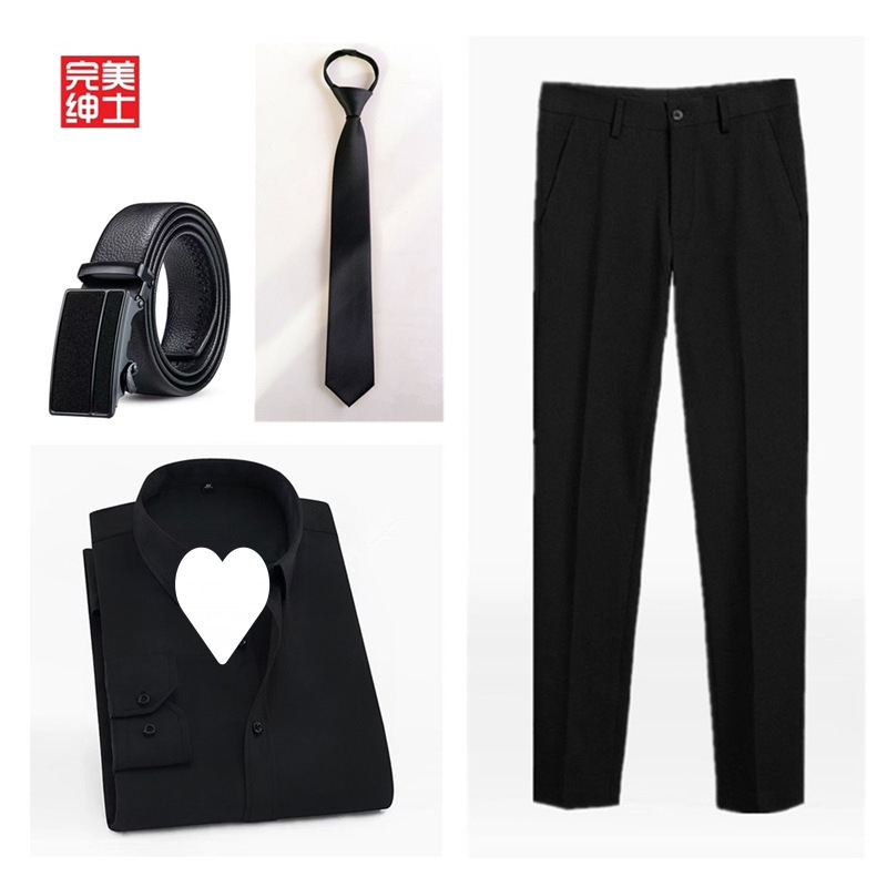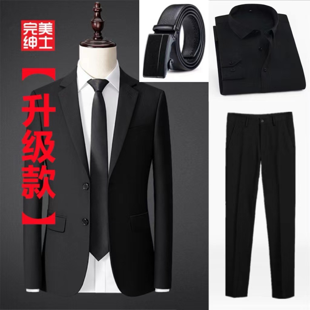 [Обновленная модель] (комплект из 3 предметов + пояс) черный костюм + черная рубашка + черные брюки + пояс