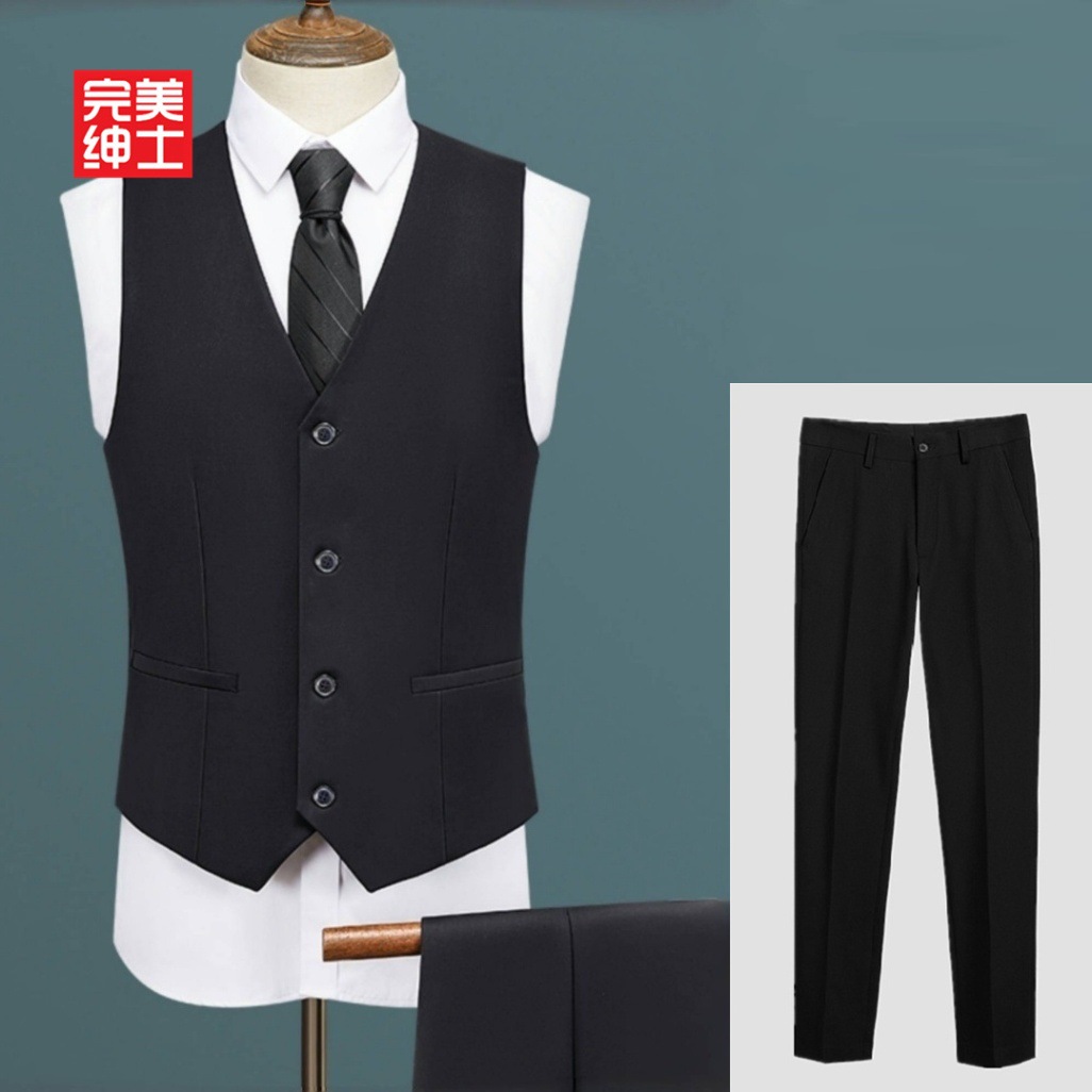 (Набор из 3 шт.) Черный жилет + черная рубашка + черные брюки.
