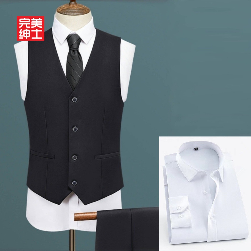 (Комплект из 3 шт.) Черный жилет + белая рубашка + черные брюки