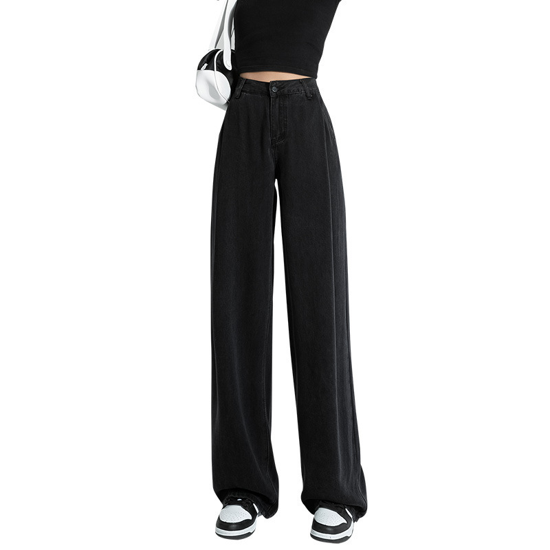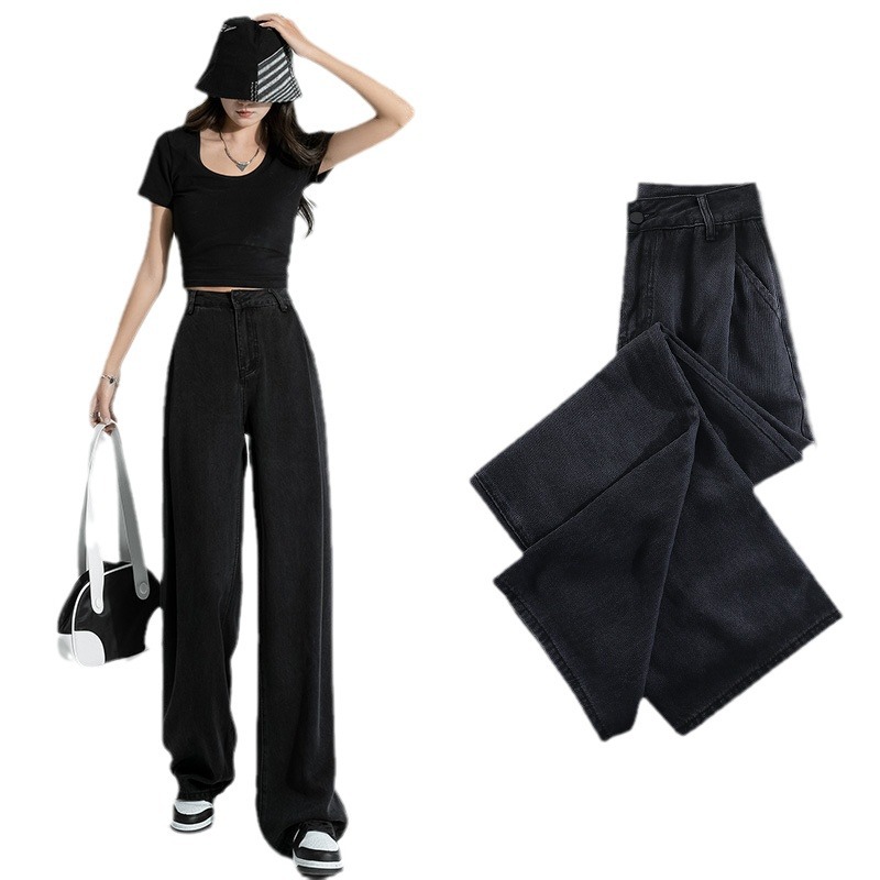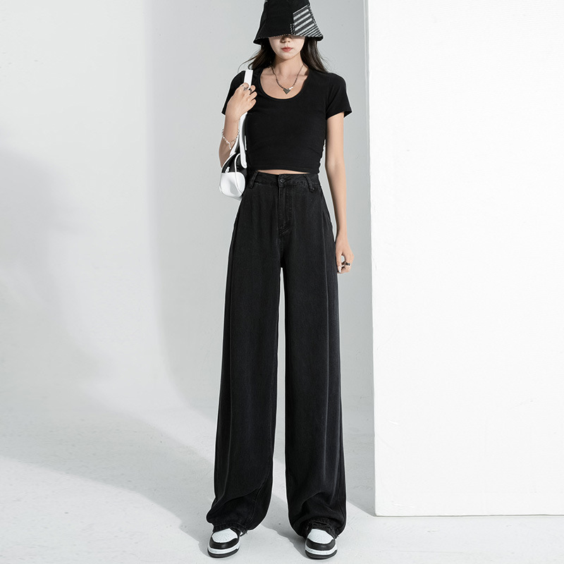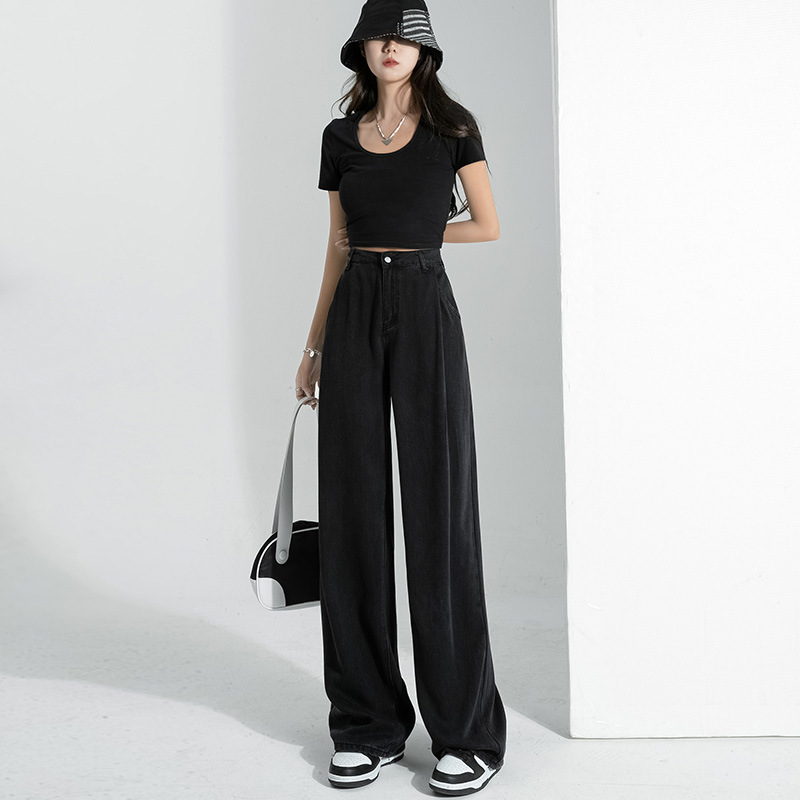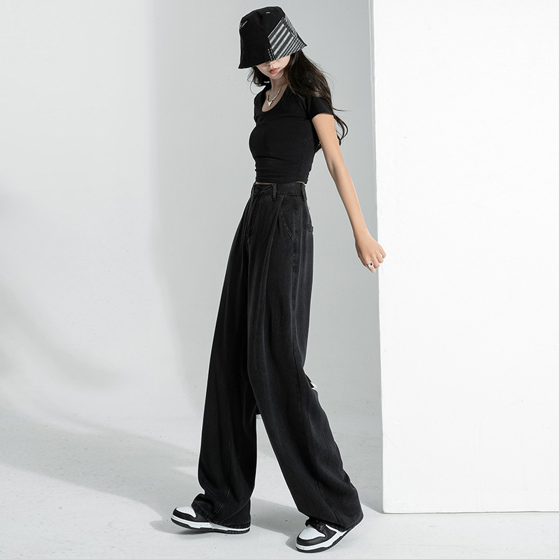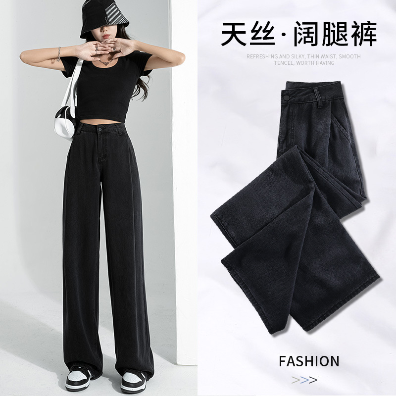 Главная страница > Джинсы EVISUN Tencel черные женские, с высокой талией, стройнящие, драпирующиеся, тонкие, широкие штанины, летние свободного кроя, из ледяного шелка, модный бренд