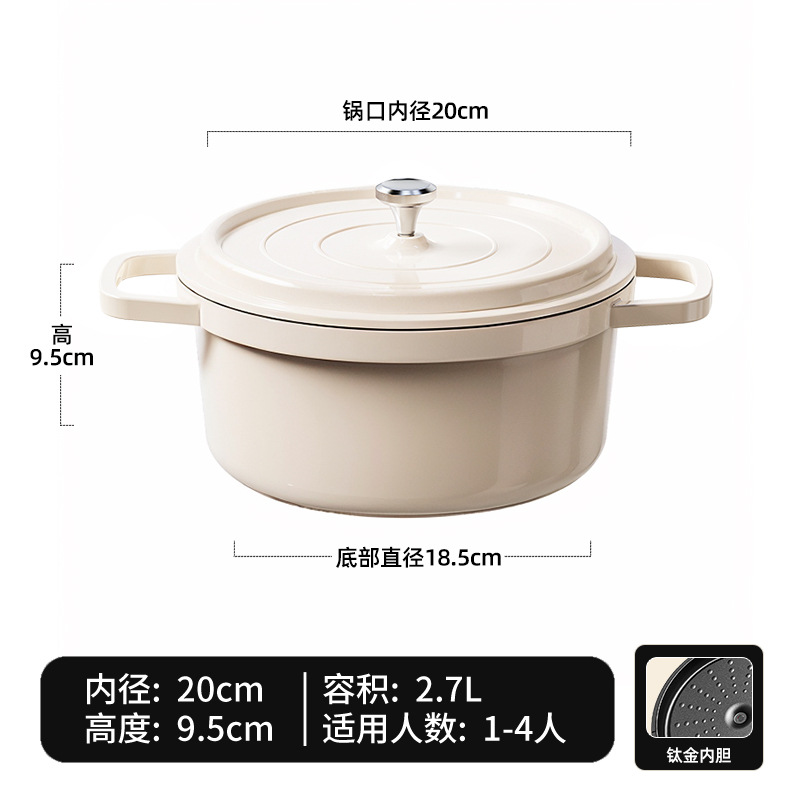 Эмалированный горшок с двумя ушками, пищевой суповой горшок под микродавлением, титановый термоизоляционный антипригарный горшок, индукционная плита, газовая плита, универсальный горшок для приготовления пищи