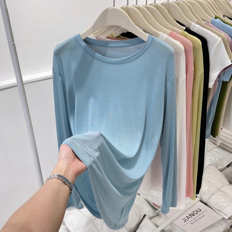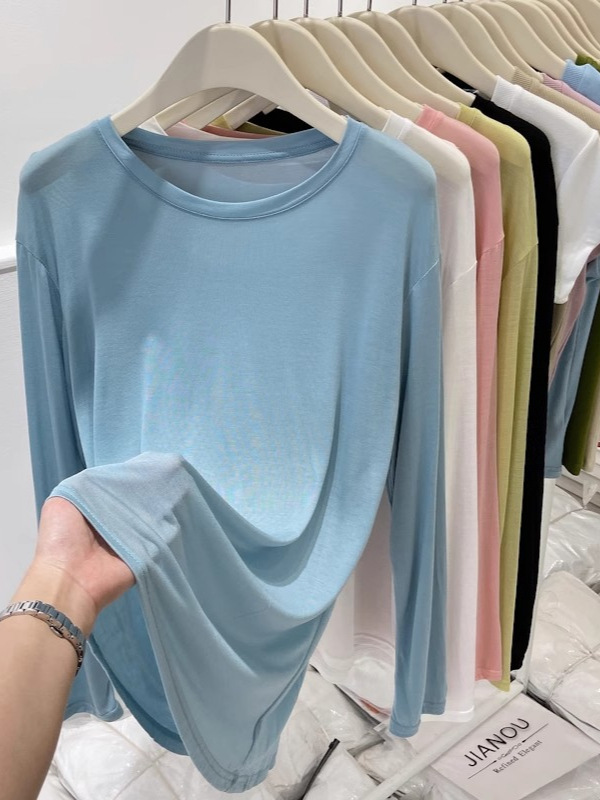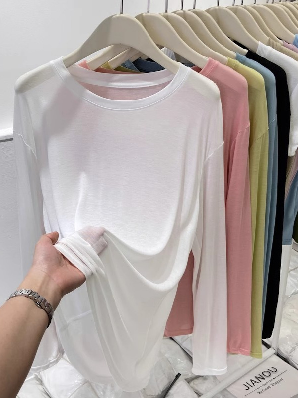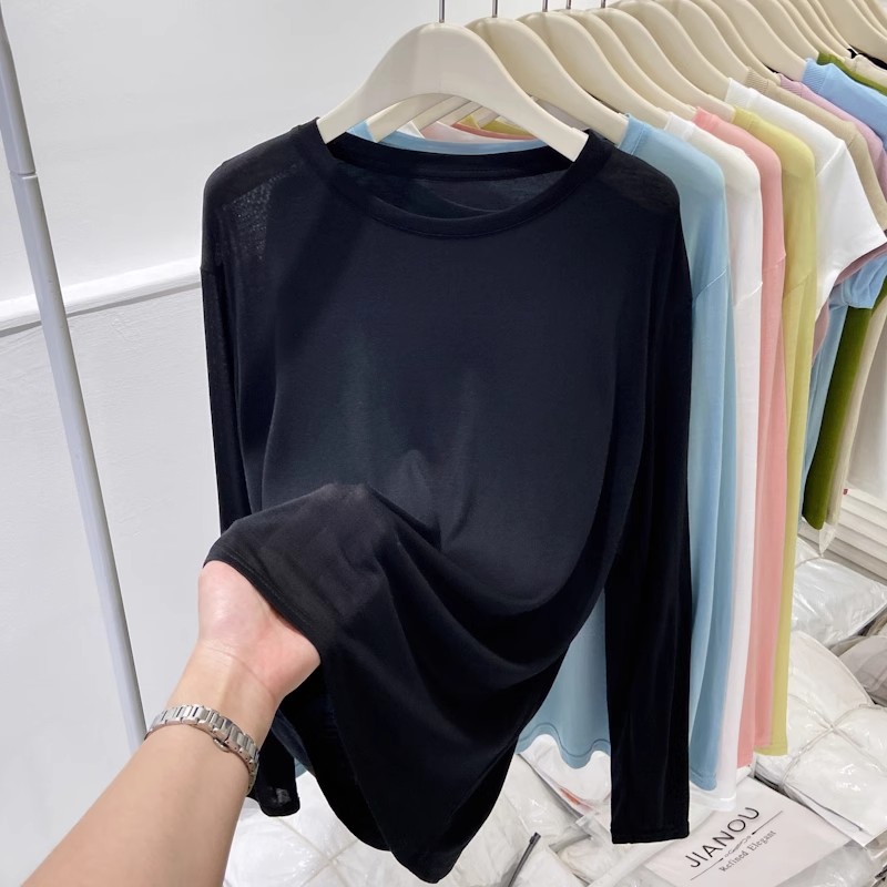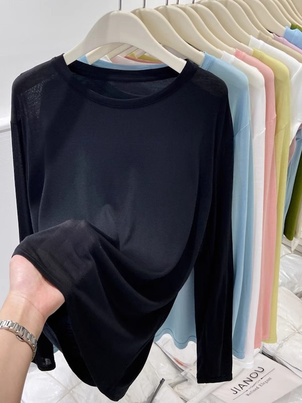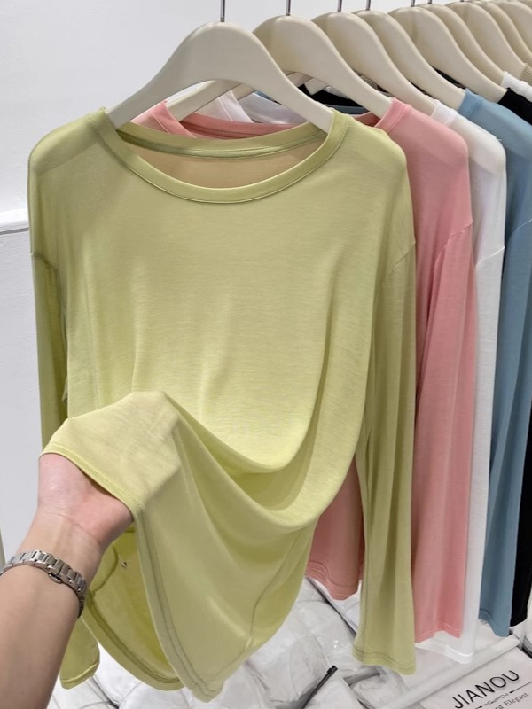 Главная страница > Легко прозрачная верхняя свободная солнцезащитная блузка с длинными рукавами, футболка для женщин, новинка 2025 года, летний корейский топ дофамина