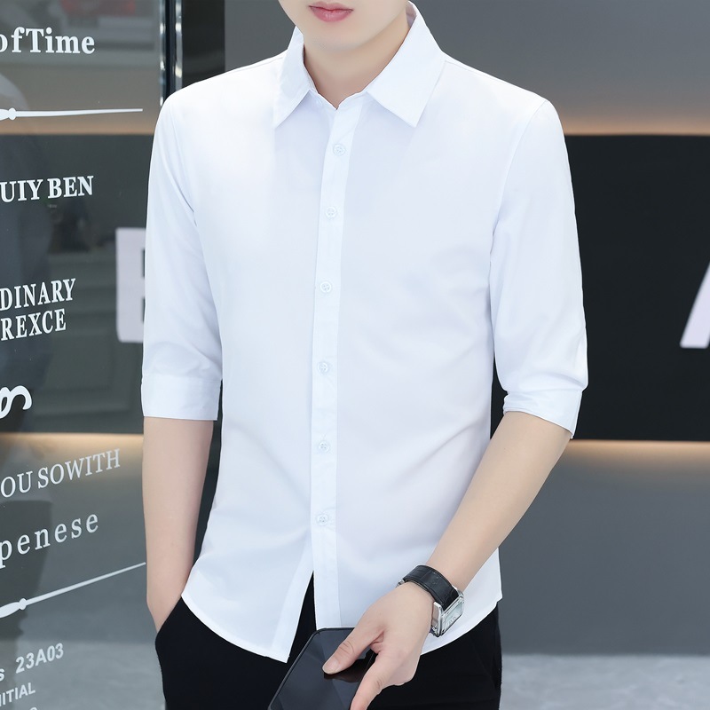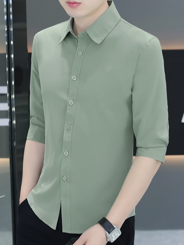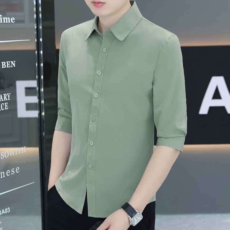 Летние рубашки с рукавами из семи пунктов для мужчин повседневные тонкие рукава из ледяного шелка