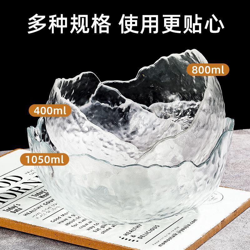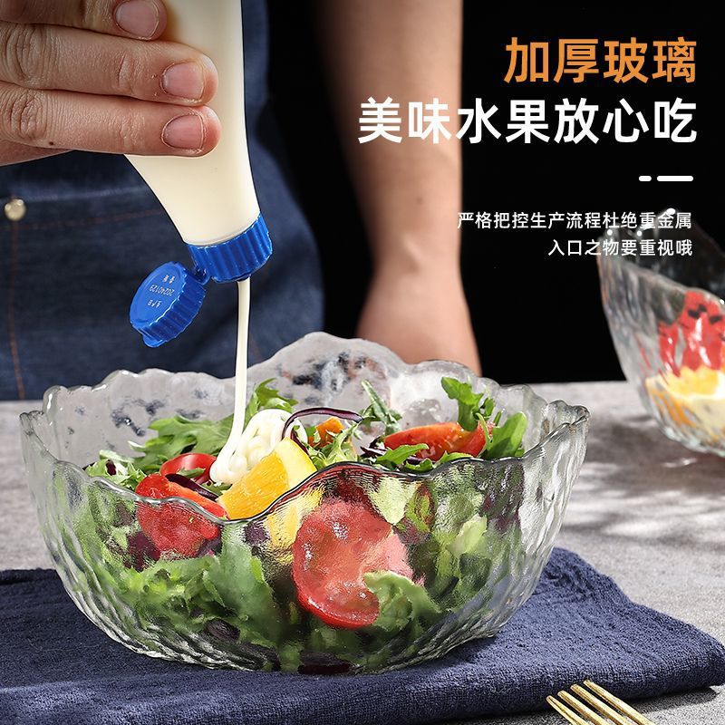 Японский красный салат стеклянная миска термостойкая посуда прозрачный набор фруктовых тарелок креативная домашняя кухня с высокой красотой