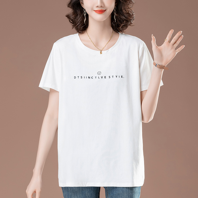 Хлопчатобумажная футболка с короткими рукавами летняя новая свободная пухлость плюс большой размер женская одежда повседневная тонкая футболка 6199