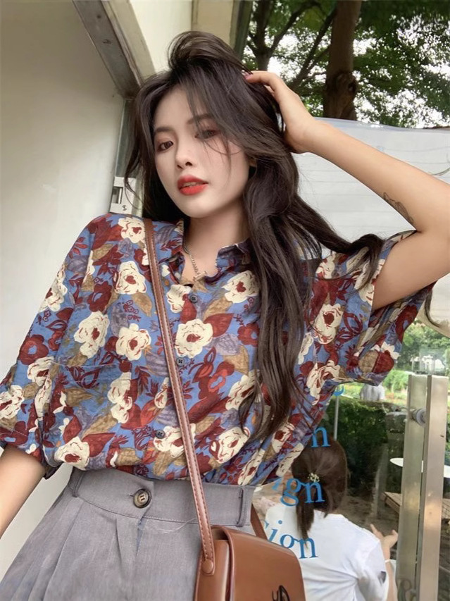 Главная страница > Летняя свободная цветочная рубашка с короткими рукавами