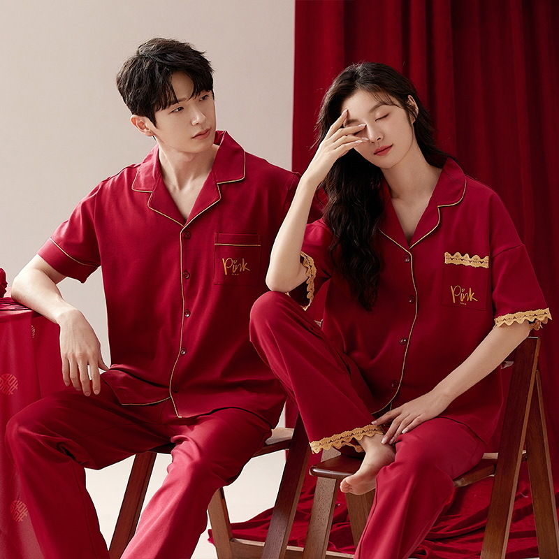 Главная страница > Пижама с отворотом для пар Летние брюки с короткими рукавами