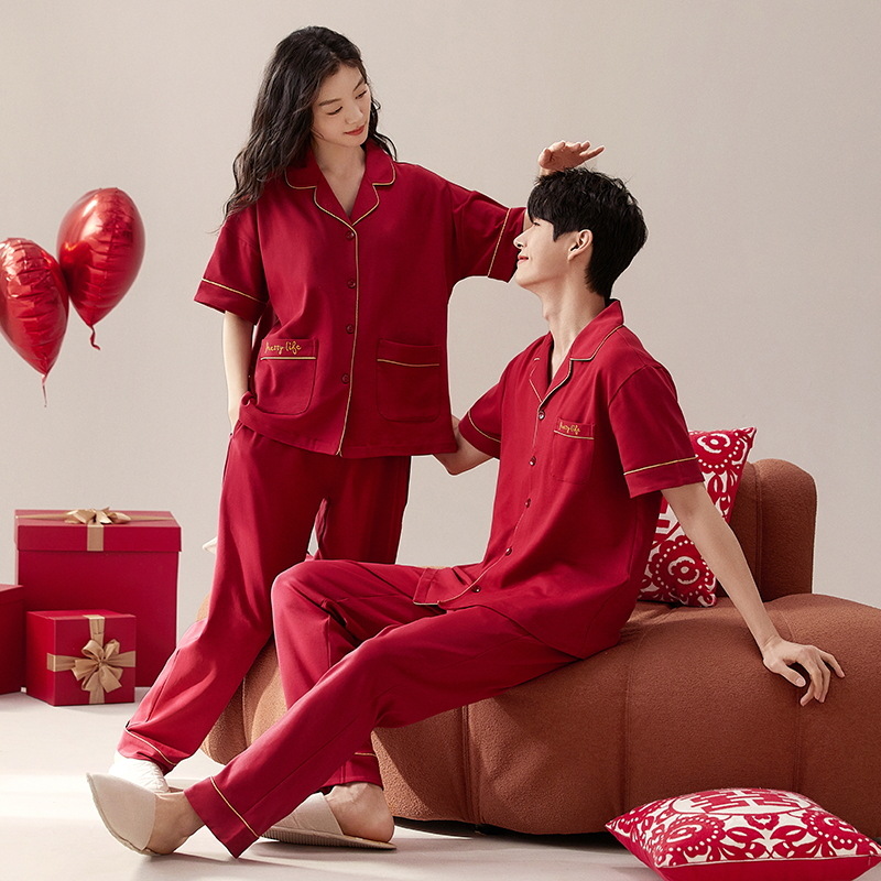 Пижама с отворотом для пар Летние брюки с короткими рукавами