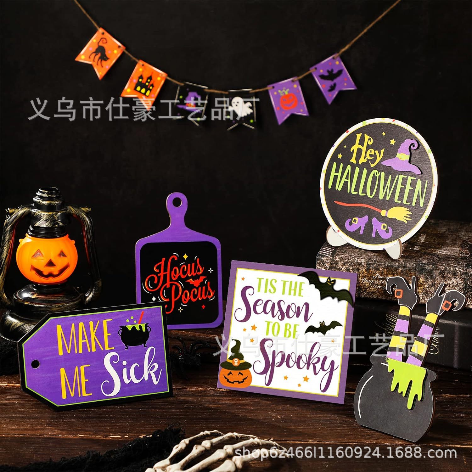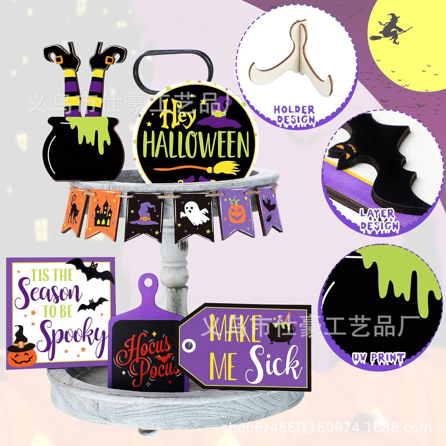 2024 Хэллоуин Многослойный поднос декоративный набор Хэллоуин мини баннер фермерский дом Хэллоуин украшения интерьера