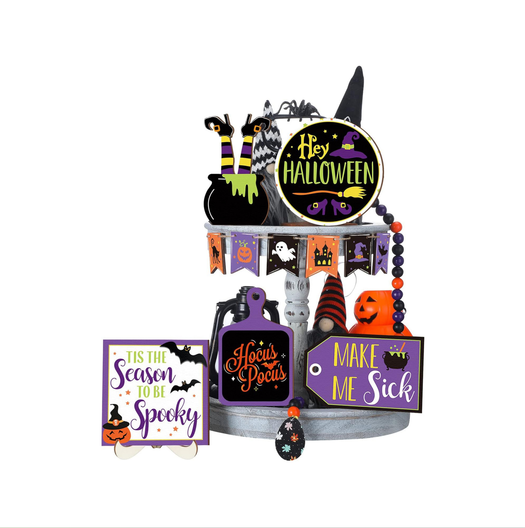 Главная страница > 2024 Хэллоуин Многослойный поднос декоративный набор Хэллоуин мини баннер фермерский дом Хэллоуин украшения интерьера