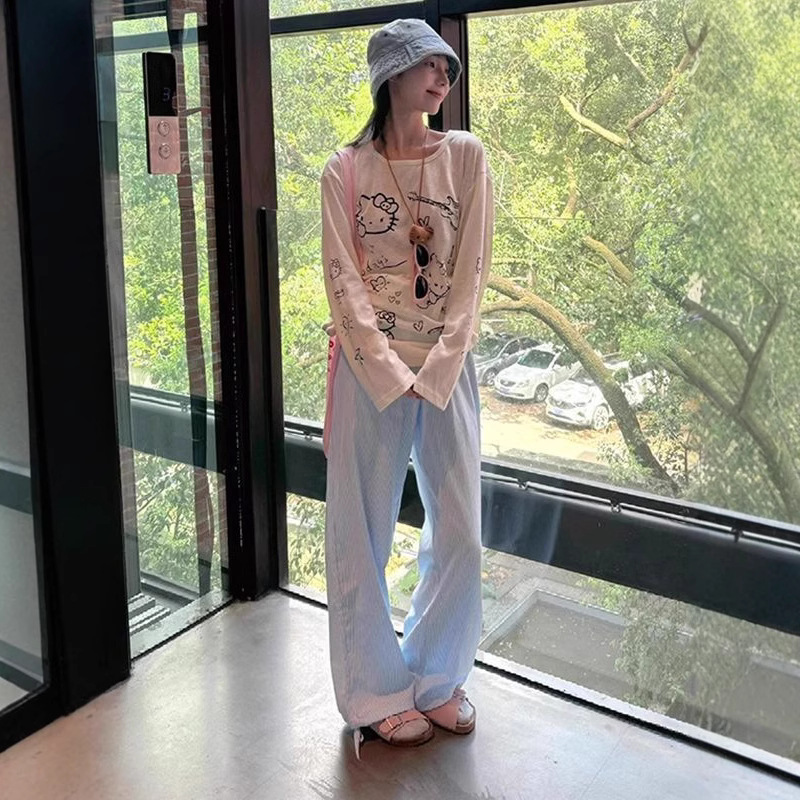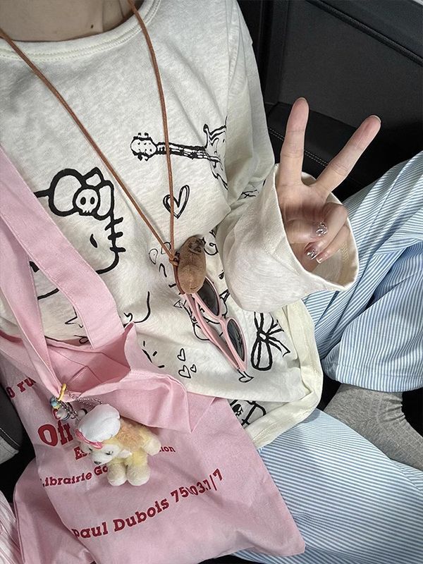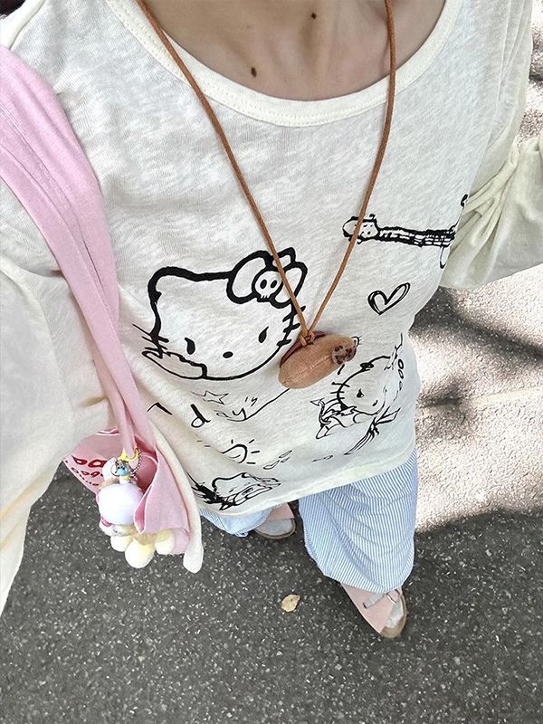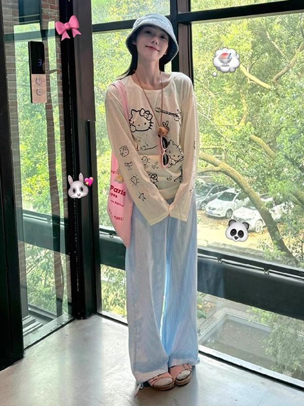Главная страница > Симпатичные Kitty с принтом слегка прозрачная тонкая футболка с длинными рукавами женская летняя свободная ленивая ветерка солнцезащитный блузка блузка оптом
