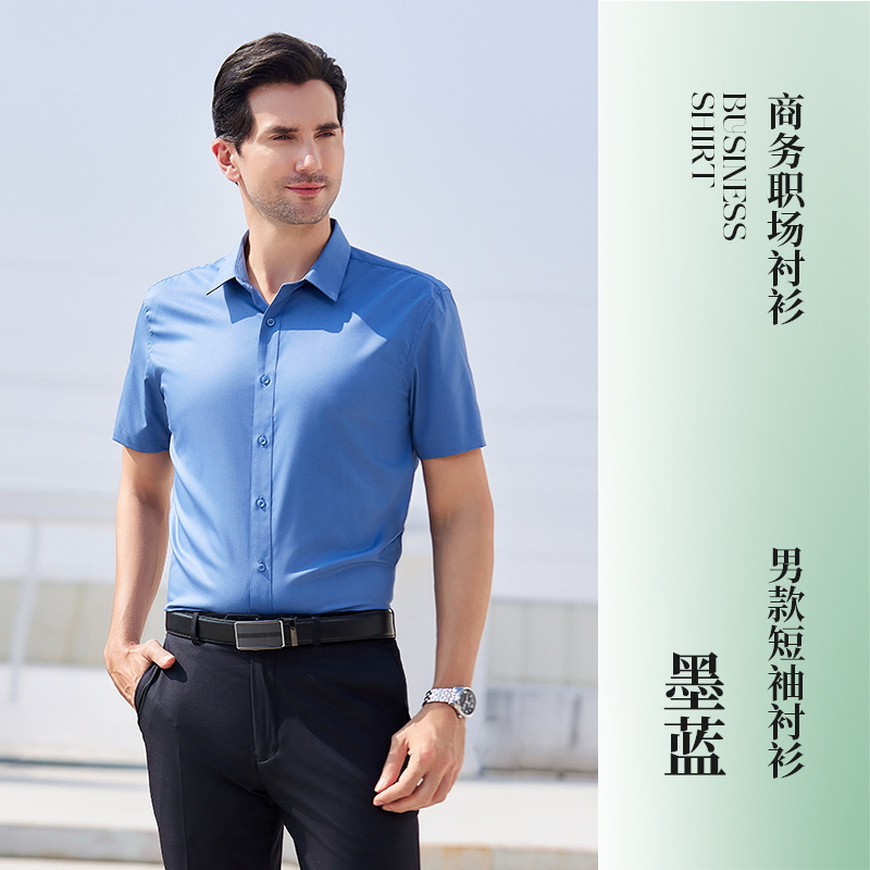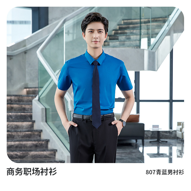 807 Тибетская голубая мужская рубашка с короткими рукавами