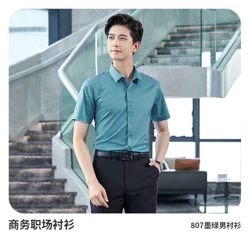 807 темно-зеленая мужская рубашка с короткими рукавами