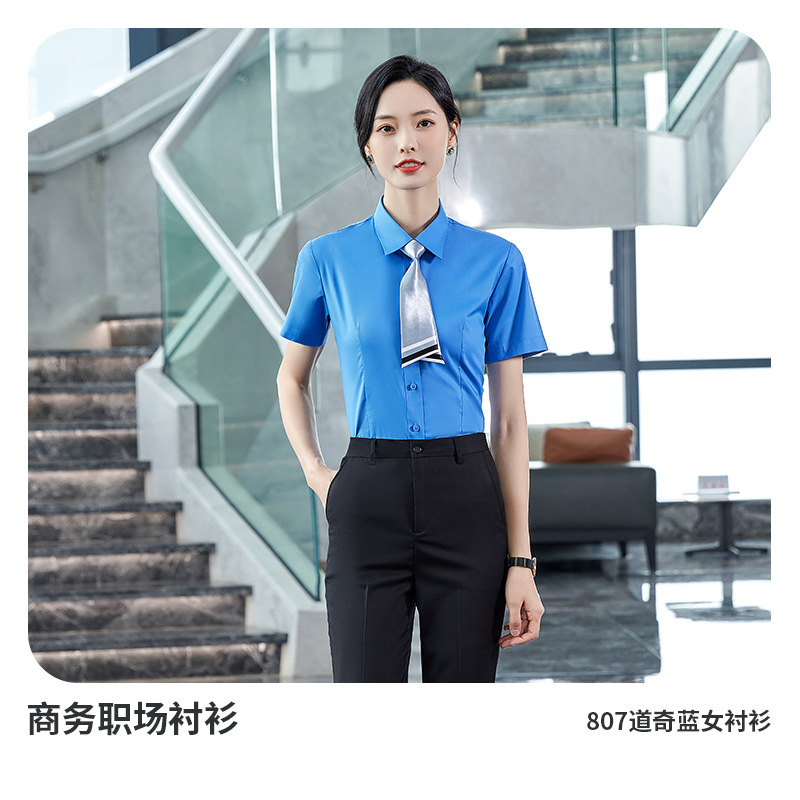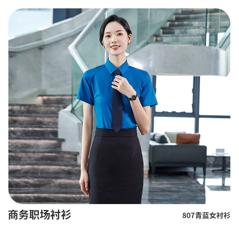 807 Тибетская голубая женская рубашка с короткими рукавами