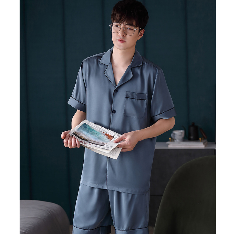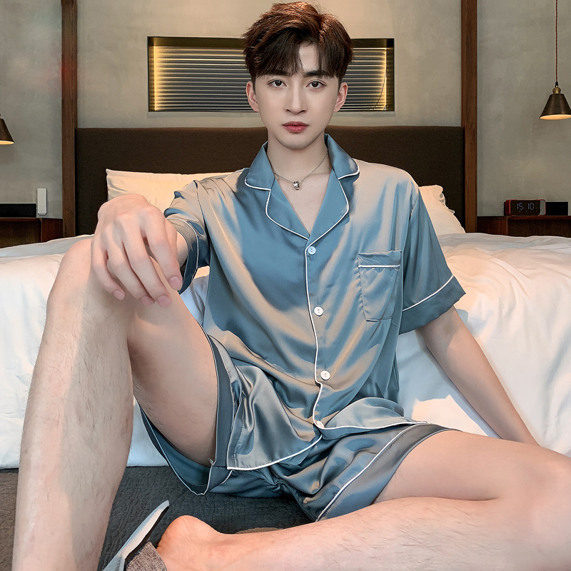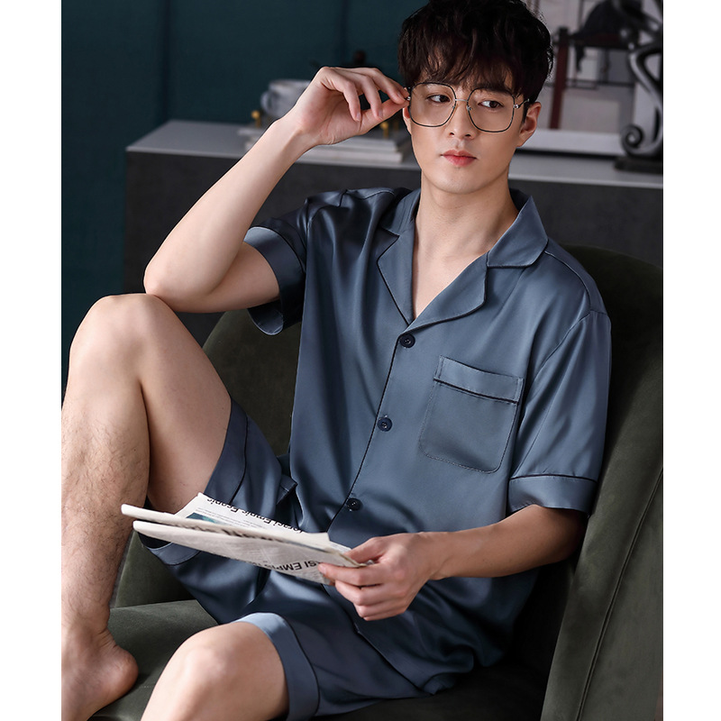 Главная страница > Мужская летняя пижама из ледяного шелка с короткими рукавами, шелковая Домашняя одежда, летний мужской тонкий костюм из шелка