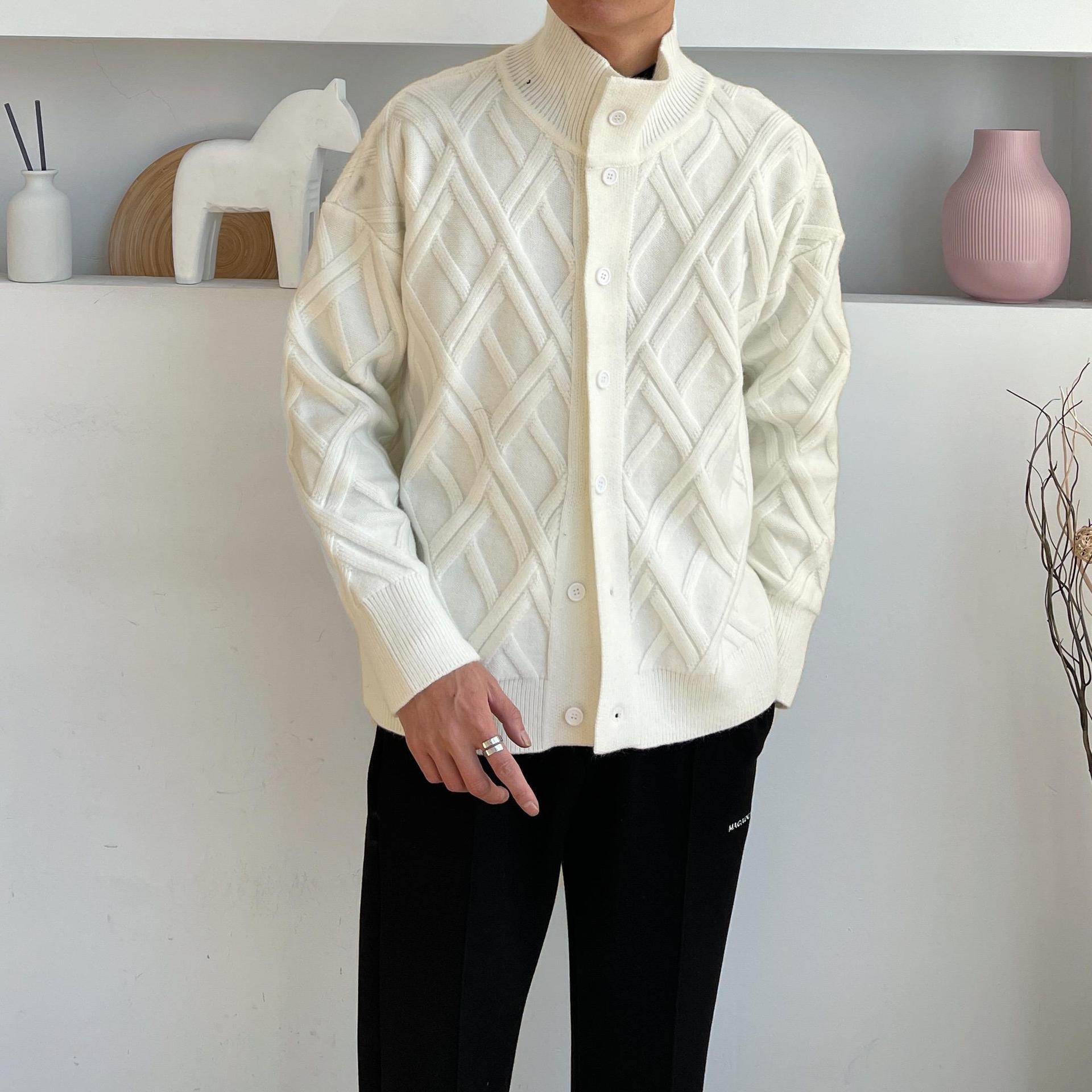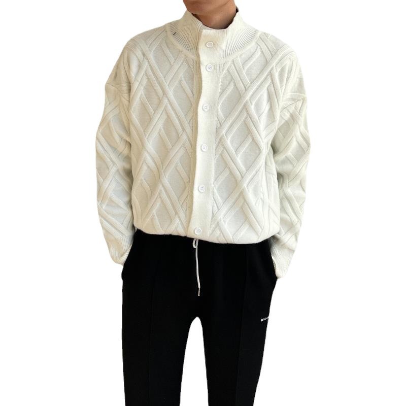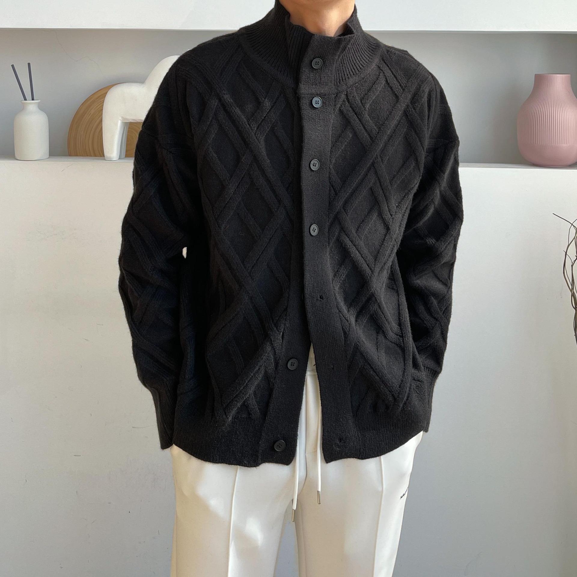 Главная страница > Высококачественный стеганый нишевый кардиган в корейском стиле, толстый вязаный свитер с полугольфом, зеленый свитер для мужчин.