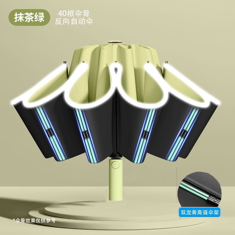 Реверсивный складной зонт, 40 спиц, цвет матча-зеленый