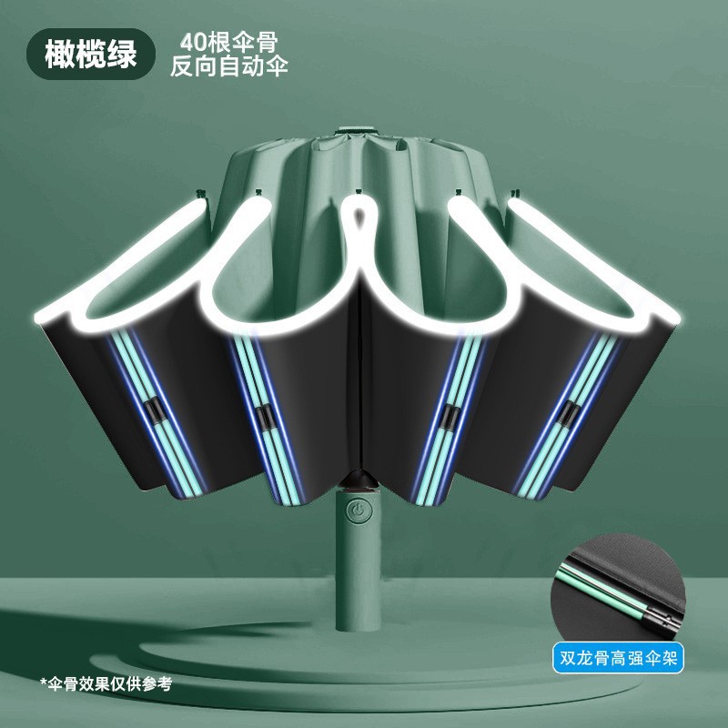 Реверсивный складной зонт, 40 спиц, оливково-зеленый