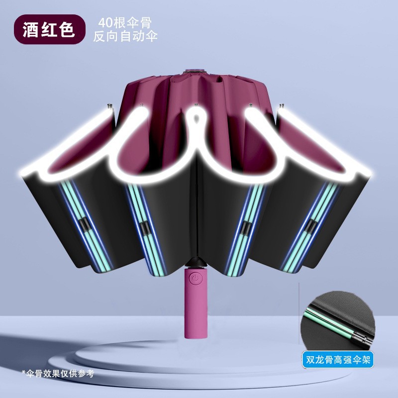 Реверсивный складной зонт, 40 спиц, бордовый