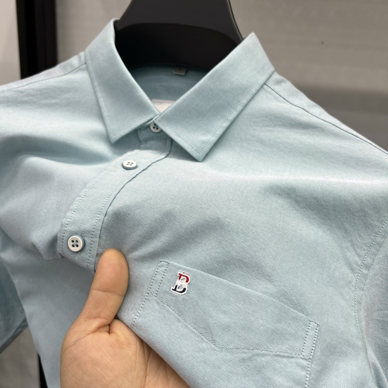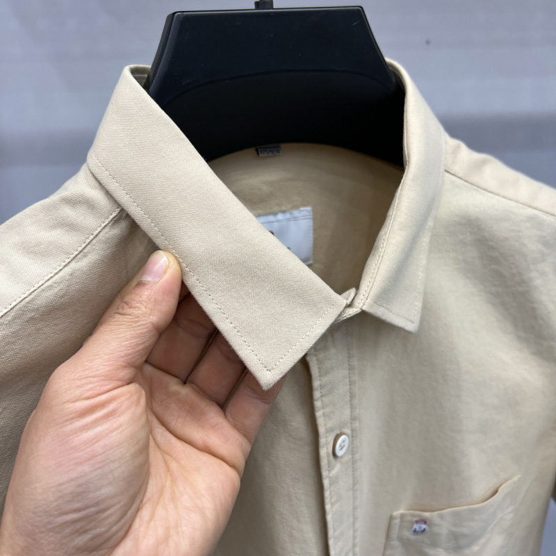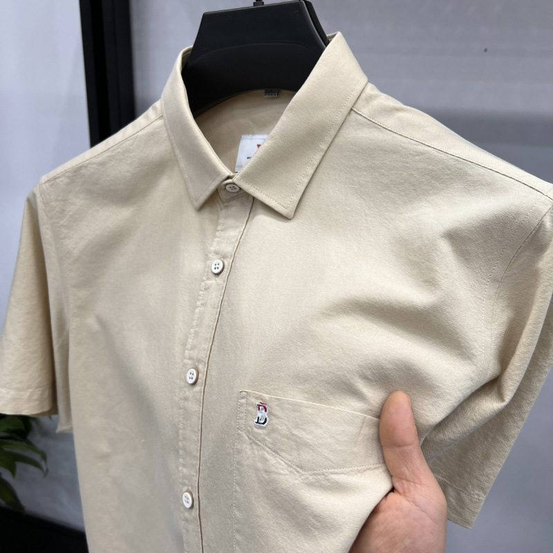 Главная страница > Высококачественная хлопчатобумажная рубашка с короткими рукавами для молодых мужчин 2025 новый летний повседневный сплошной цвет настоящий карманный модный рубашка