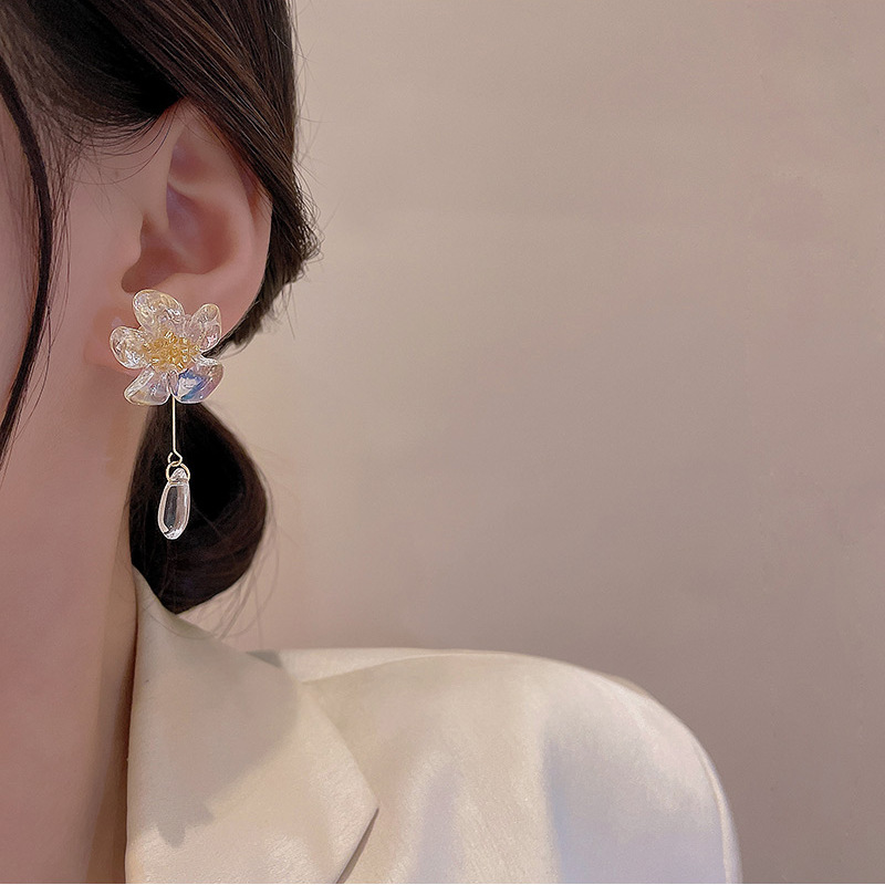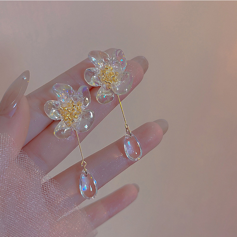 S925 Серебряные иглы прозрачные свежие цветочные серьги-гвоздики легкие роскошные высококачественные серьги с темпераментом элегантные нежные цветочные серьги