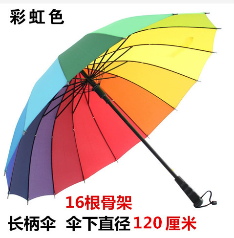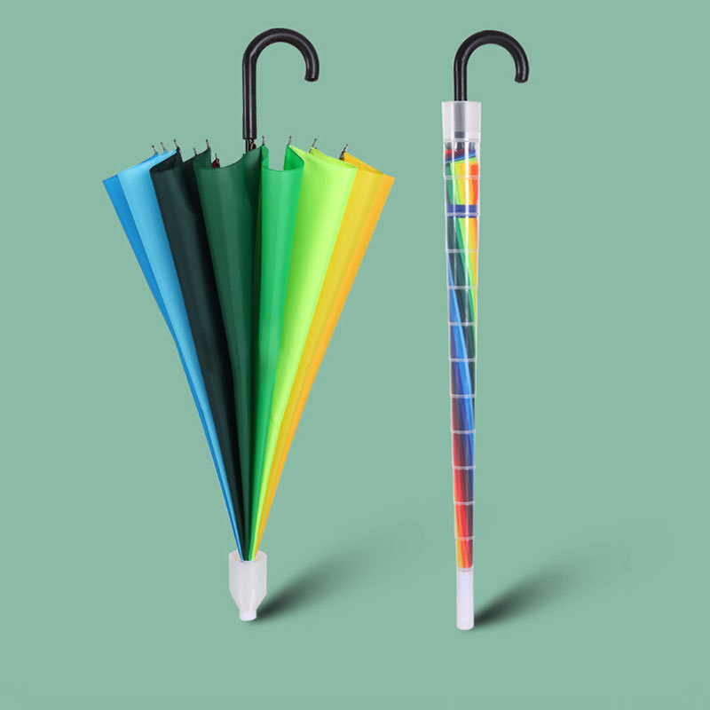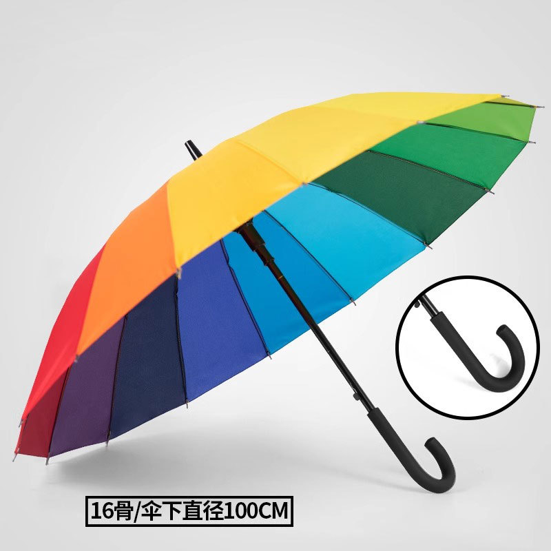 Радужный зонт с прямой ручкой (16 ребер, беспроводной, простой и элегантный)