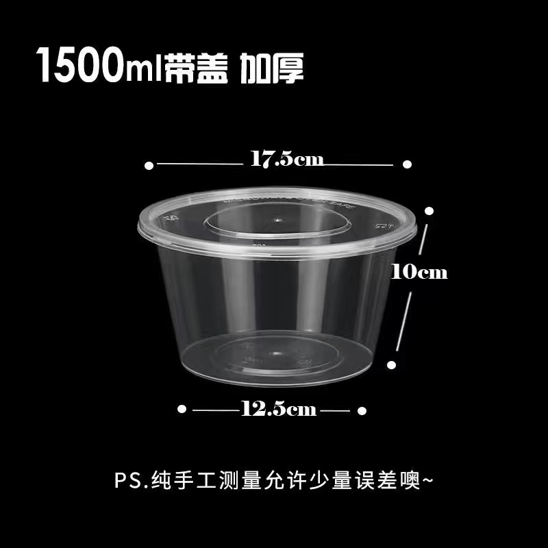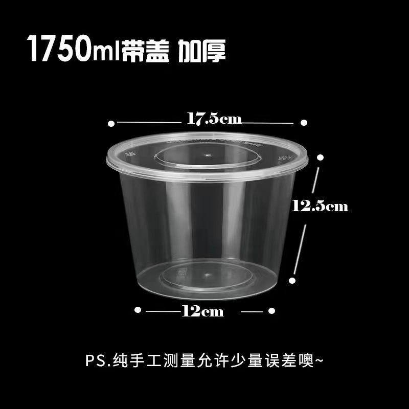 1750 мл круглый прозрачный утолщенный (30 комплектов с крышкой)