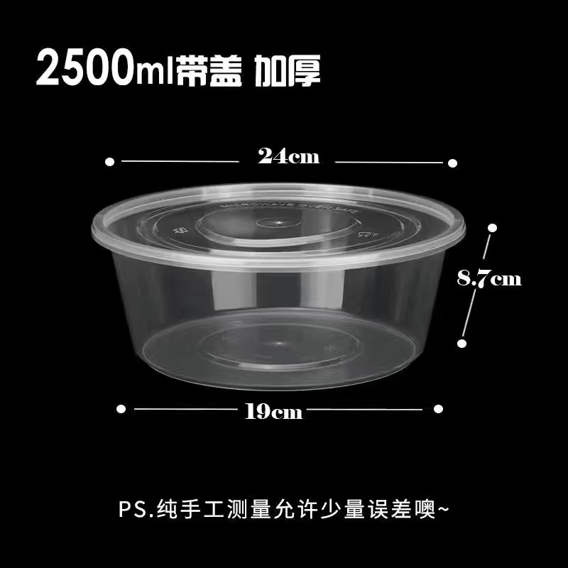 Круглая прозрачная и утолщенная раковина объемом 2500 мл (30 комплектов с крышкой)