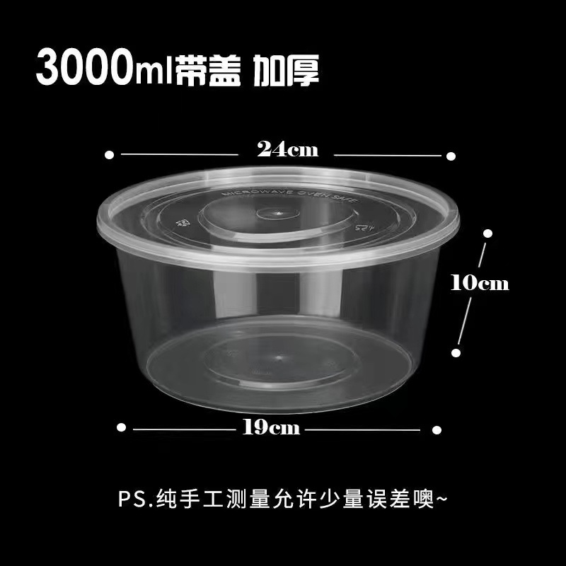 Круглая прозрачная и утолщенная раковина объемом 3000 мл (30 комплектов с крышкой)