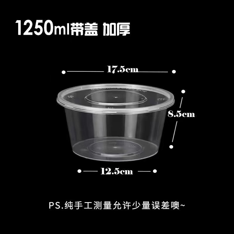 1250 мл круглый прозрачный утолщенный (30 комплектов с крышкой)