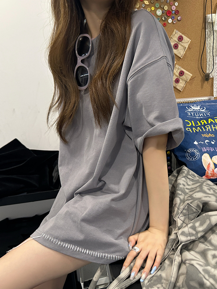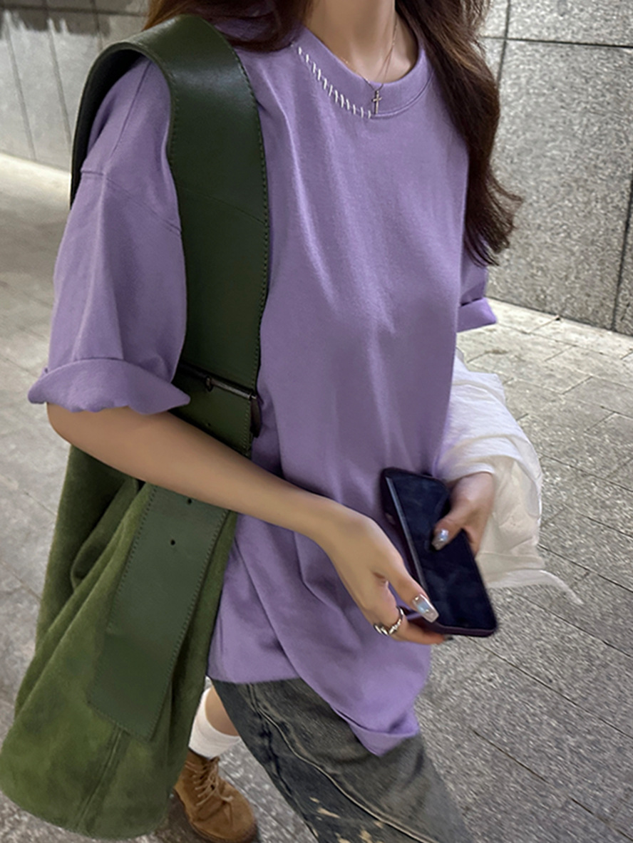 Главная страница > Ручная стежка дизайн хлопчатобумажная футболка сплошной цвет женская короткая рукава летняя новая свободная хлопковая полукруза с круглым вырезом на плече белое t