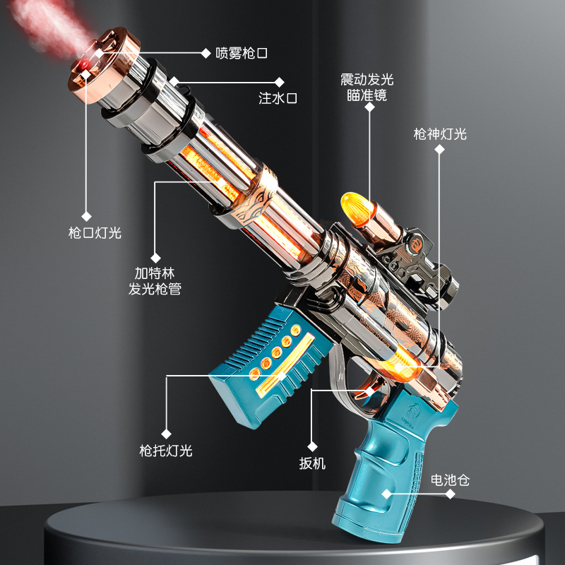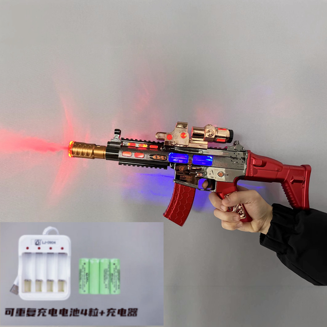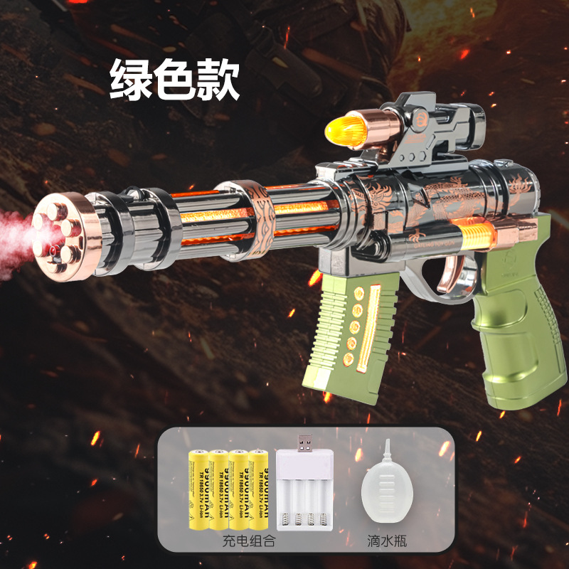 Электрический светящийся Гатлин ест курицу Детский электрический игрушечный пистолет мальчик имитирует огонь, звук, телескопический спрей и свет