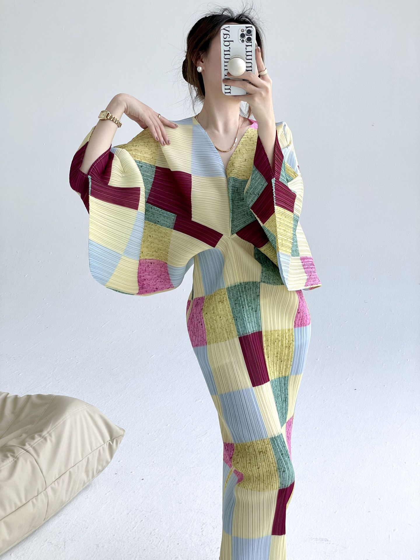 Главная страница > Три дома 2025 весна новая мода с принтом v-образным вырезом тонкое складчатое платье женское грушевидное платье