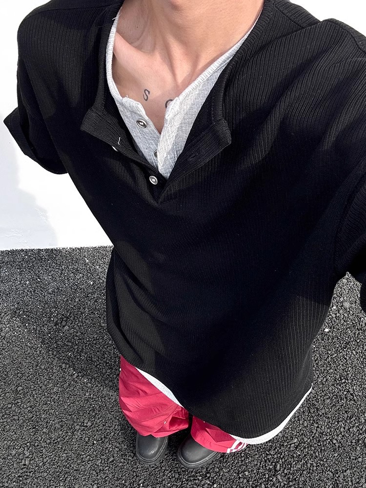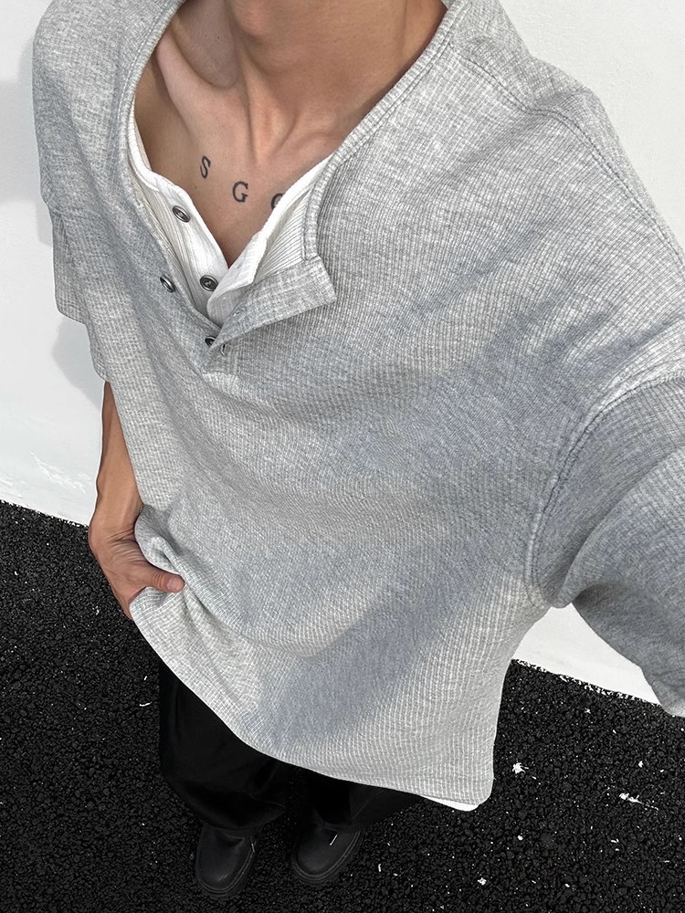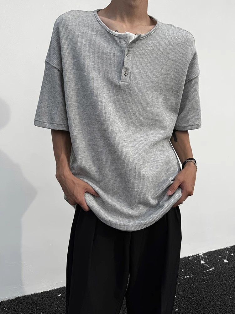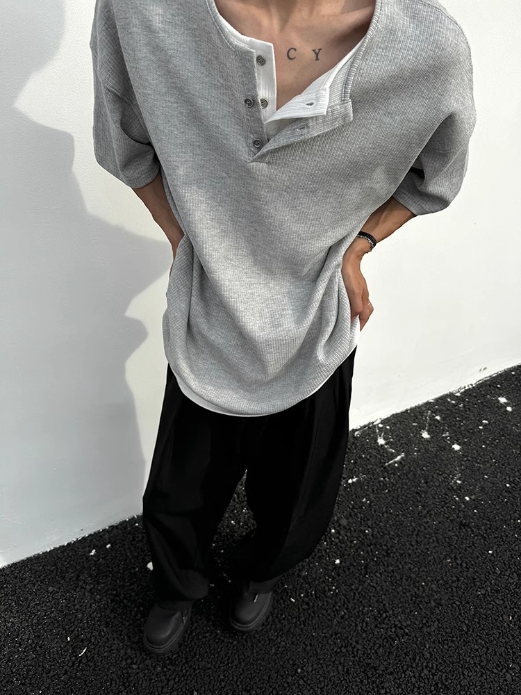 Главная страница > Внешняя торговля нишевый дизайн чувство вафли поддельные два коротких рукава мужской летний новый свободный серый сшитая деконструкция футболка