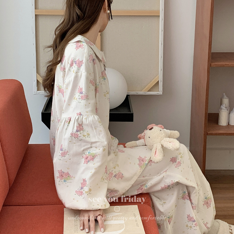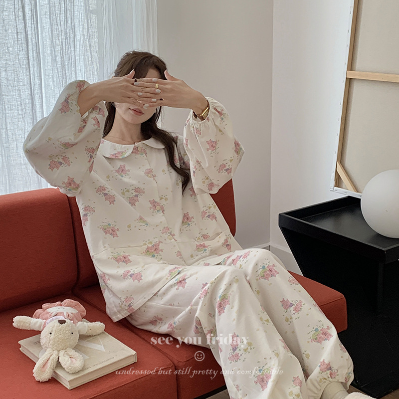 Главная страница > Удобная хлопковая пижама с воротником для женщин, корейская женская одежда с милым котом, новинка 2024 года, домашняя одежда