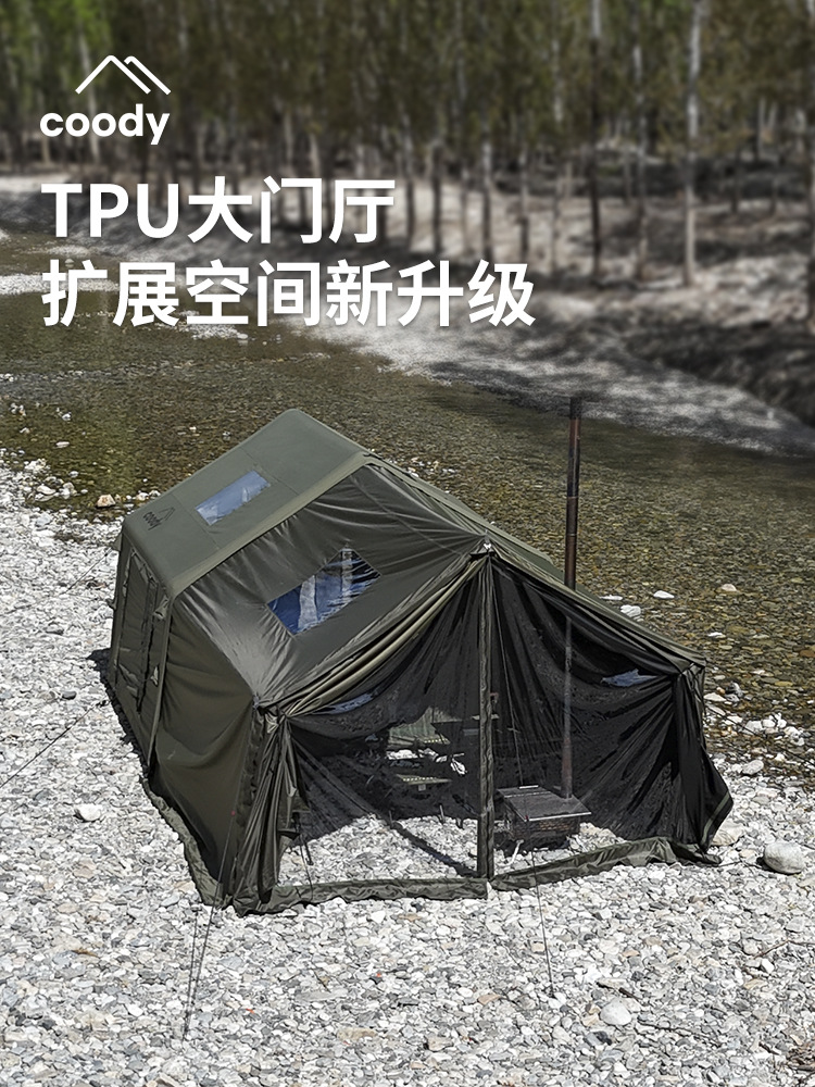 Главная страница > Junxin Coody8 ㎡ Зеленая надувная палатка в стиле милитари для кемпинга, одна спальня и одна гостиная, хлопковый непромокаемый виниловый навес, устойчивый кемпинг